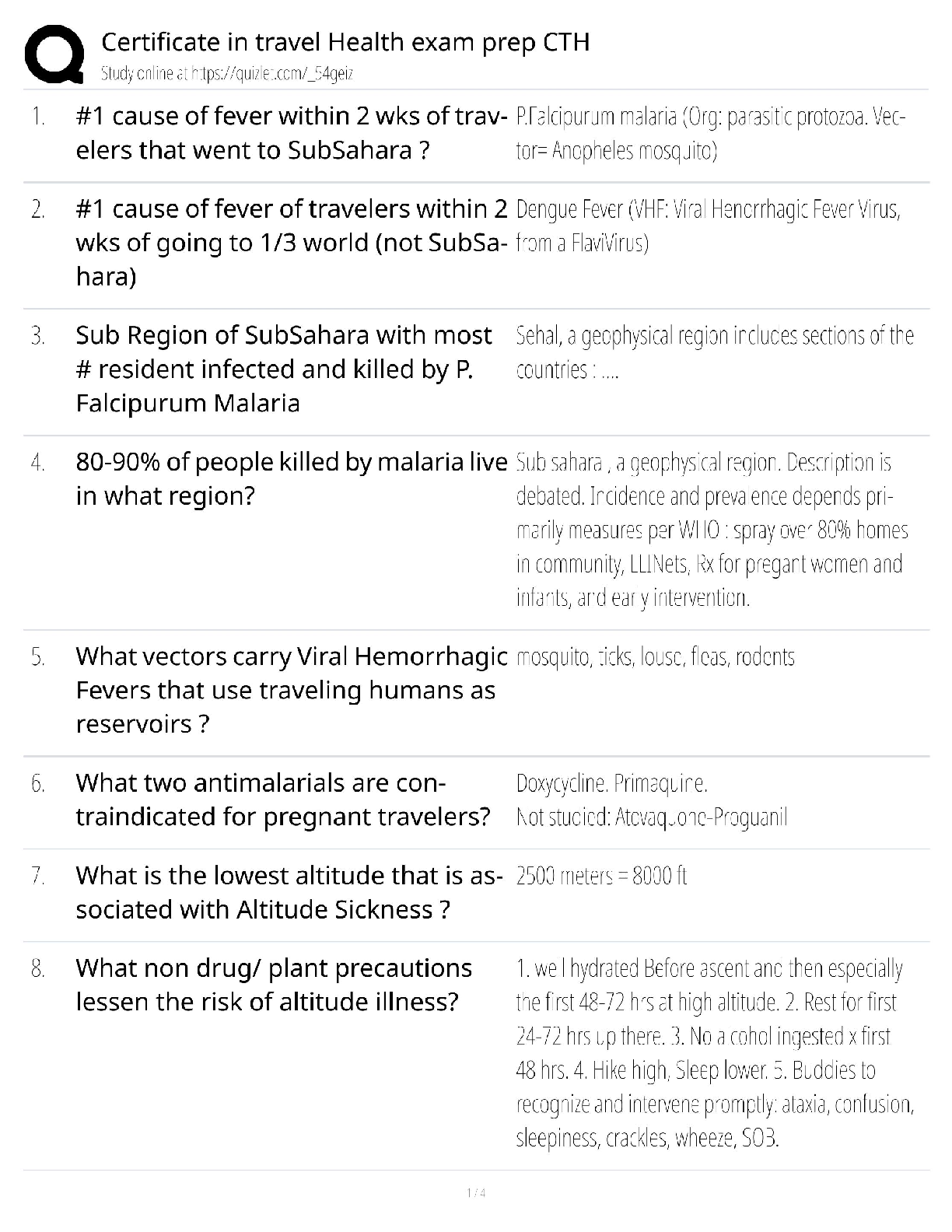 Public Health > QUESTIONS & ANSWERS > Certificate in Travel Health (CTH) / Exam Prep Guide / 2025 Update / Score 100% (All)
