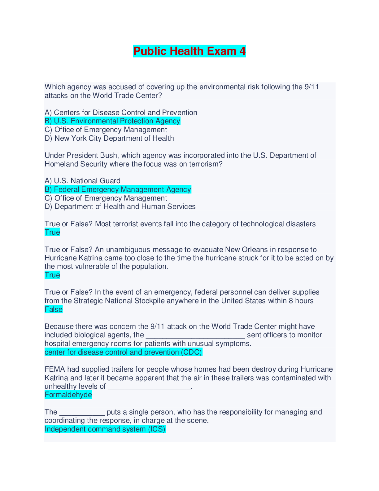 Public Health > EXAM > Public Health Exam 4 - Questions and Answers (All)