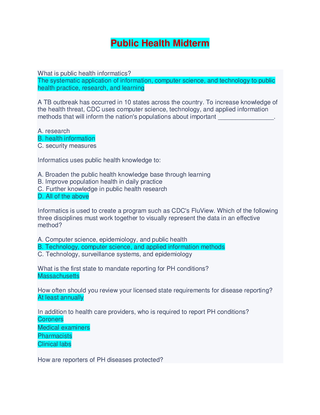 Public Health > EXAM > Public Health Midterm Exam - Questions and Answers (All)