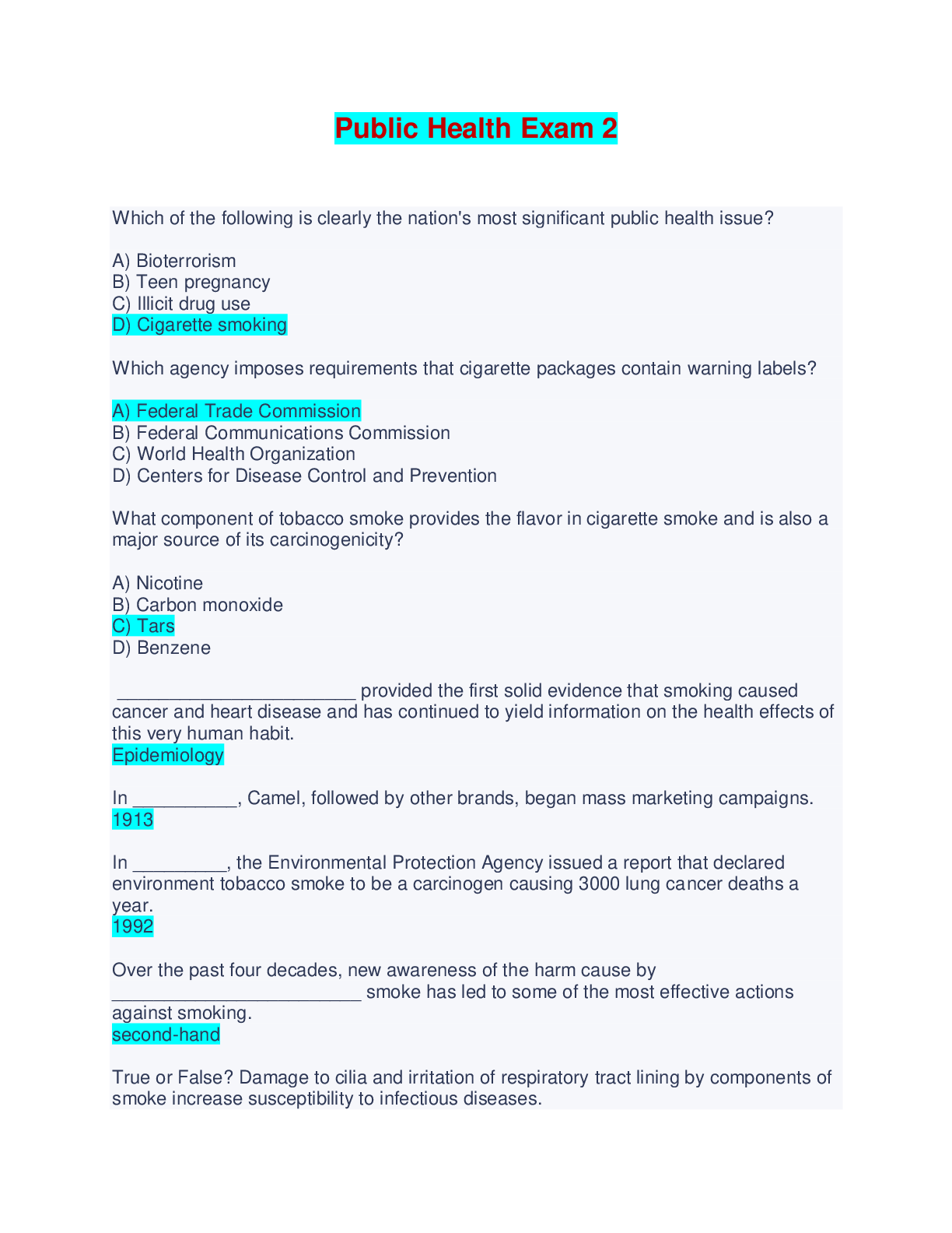 Public Health > EXAM > Public Health Exam 2 - Questions and Answers (All)