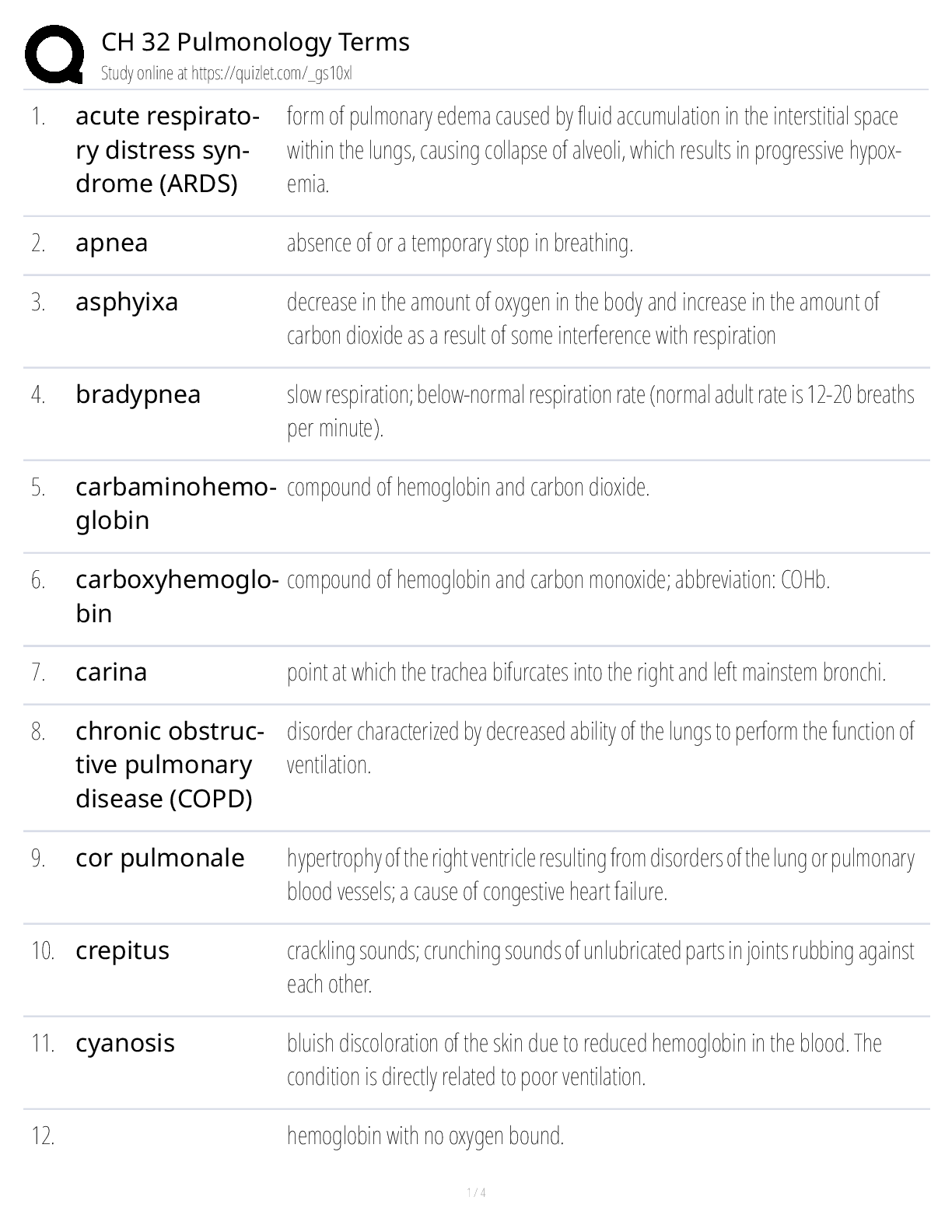 Pulmonology > Class Notes > CH 32 Pulmonology Terms — Class Notes, Study Guide & Test Bank (Respiratory Terminology Review) (All)