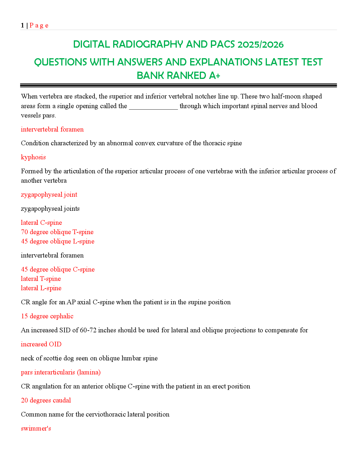 Radiology > TEST BANKS > Test Bank Complete_ Introduction to Radiologic & Imaging Sciences & Patient Care 8th Edition, (2025) By Arlene M. Adler, Richard R. Carlton & Kori L. Stewart| All Chapters 1-26| 4 Units| Latest With Answers And Detailed Explanation| Graded A+ (All)
