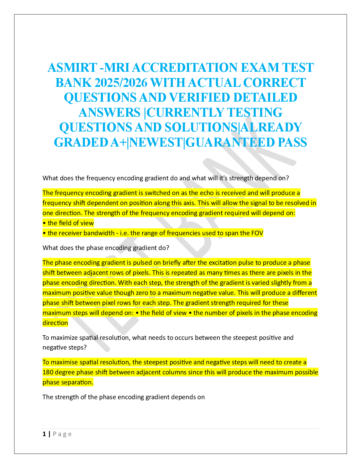 Radiology > EXAM > ASMIRT -MRI ACCREDITATION EXAM TEST BANK (All)