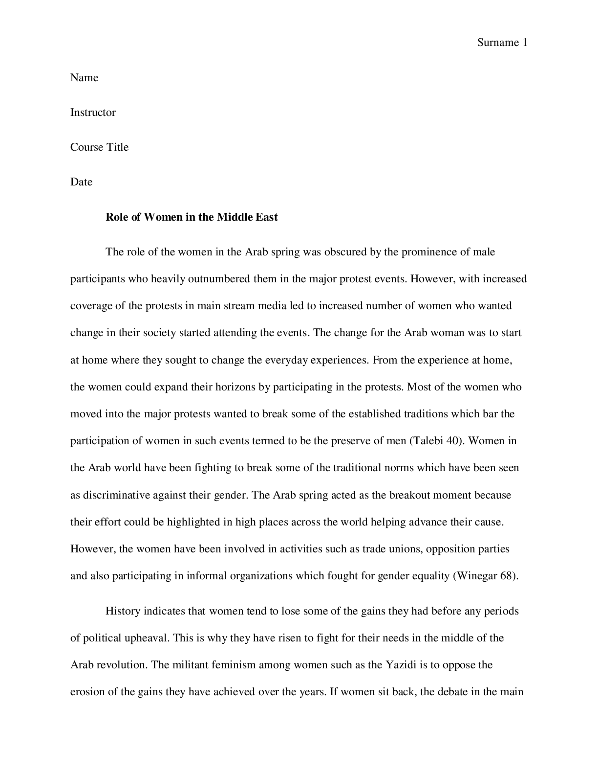 Gender Studies > ESSAY > Role of Women in the Middle East (All)