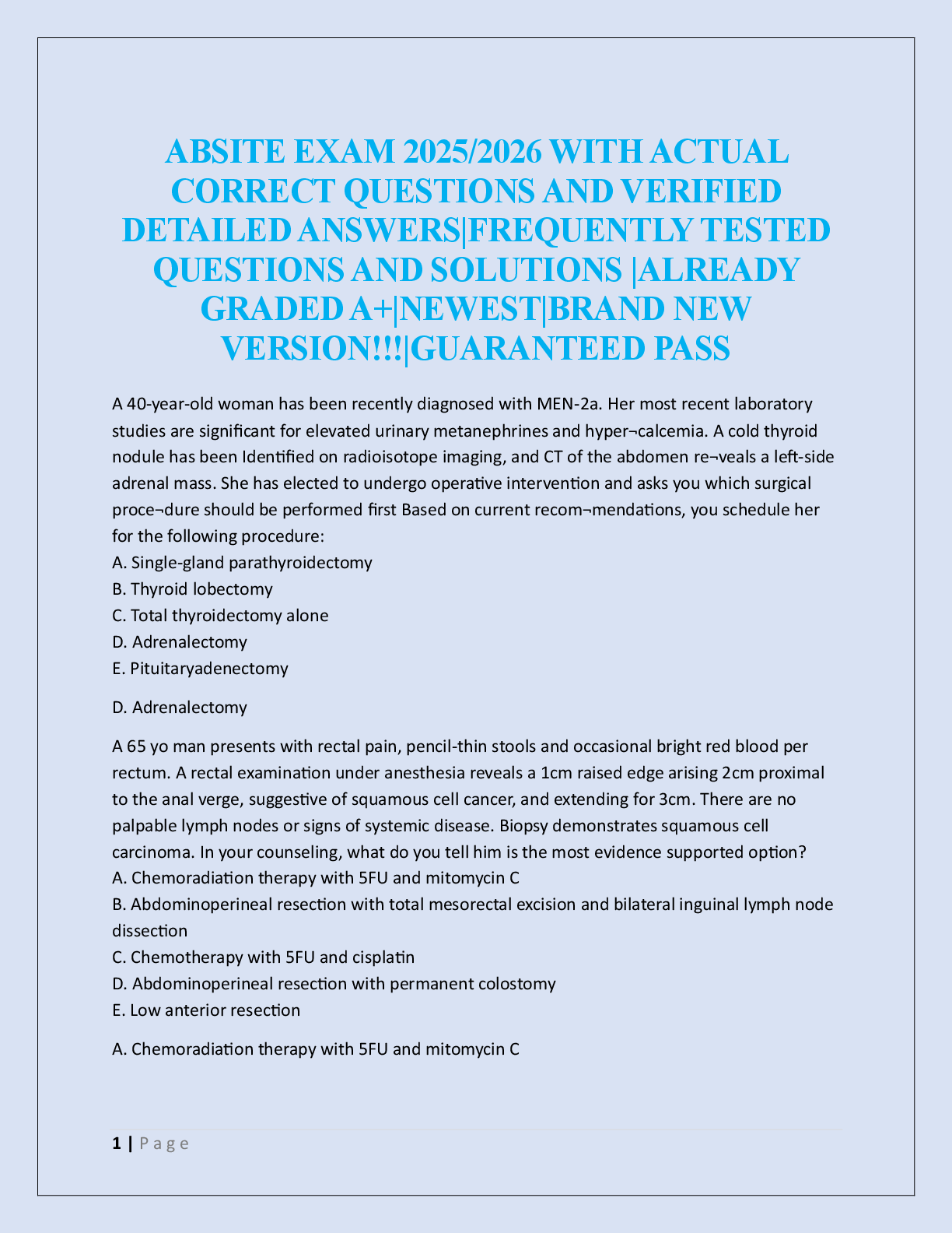 Surgery > QUESTIONS & ANSWERS > NBCE: Minor Surgery & Proctology – Comprehensive Exam Guide with Verified Questions & Answers (All)