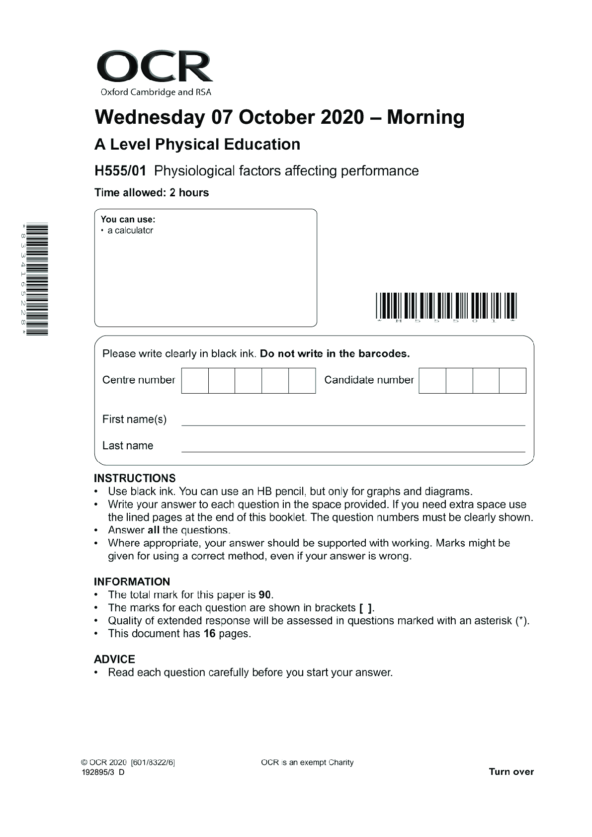 Physical Education > Higher Education > A Level Physical Education_H555/01 Question Paper Nov 2020 | Physiological Factors Affecting Performance (All)