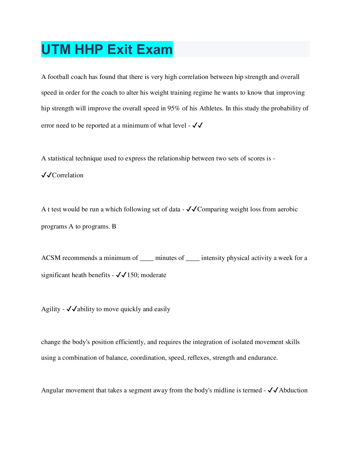 Physical Education > QUESTIONS & ANSWERS > UTM HHP Exit Exam (All)
