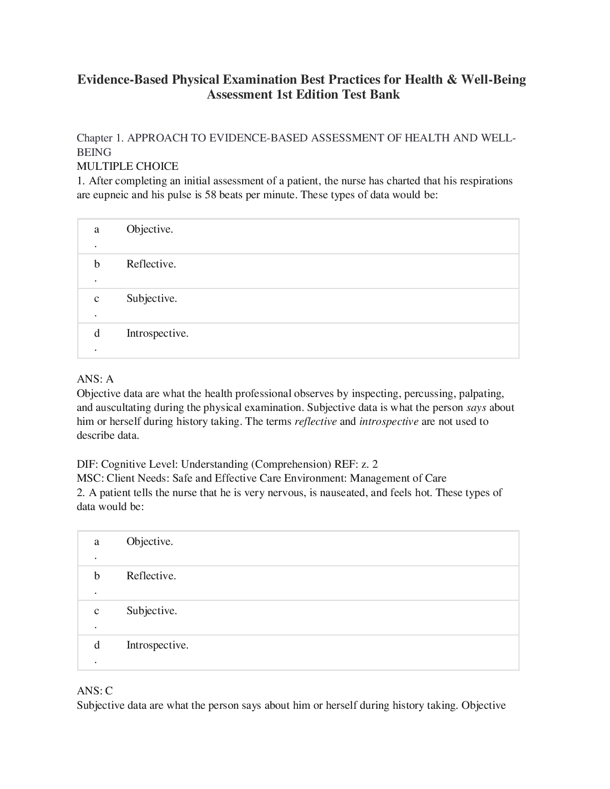 Physical Education > TEST BANKS > Test Bank for Evidence-Based Physical Examination Best Practices for Health & Well-Being Assessment 1st Edition Test Bank A+ (All)