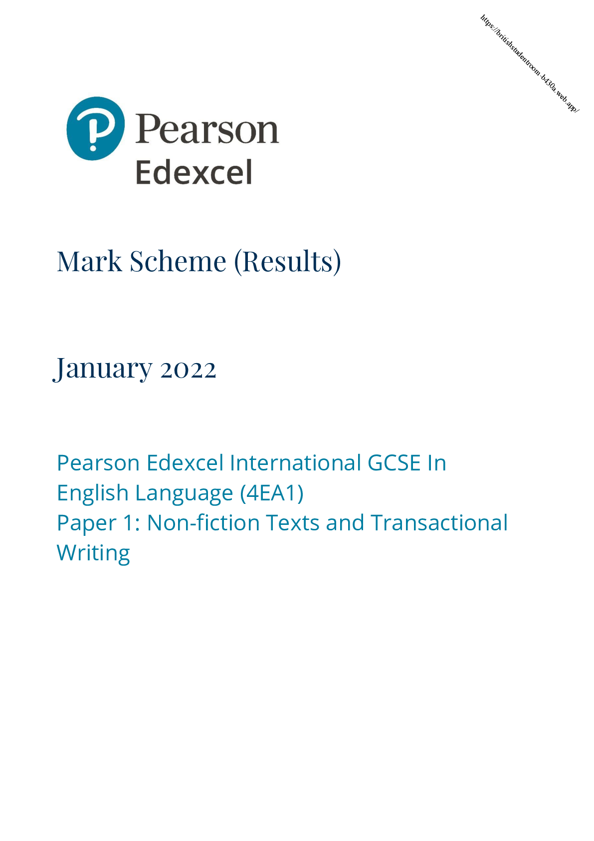 English Language > Edexcel > Pearson Edexcel International_GCSE English Language A_4EA1/01 Mark Scheme Jan 2022 | Paper 1: Non-fiction Texts and Transactional Writing (All)