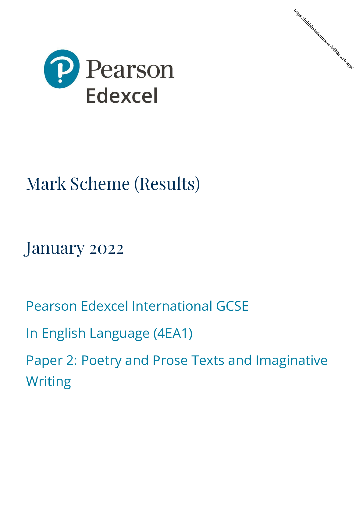 English Language > Edexcel > Pearson Edexcel International_GCSE English Language A_4EA1/02R Mark Scheme Jan 2022 | Paper 02R: Poetry and Prose Texts and Imaginative Writing (All)