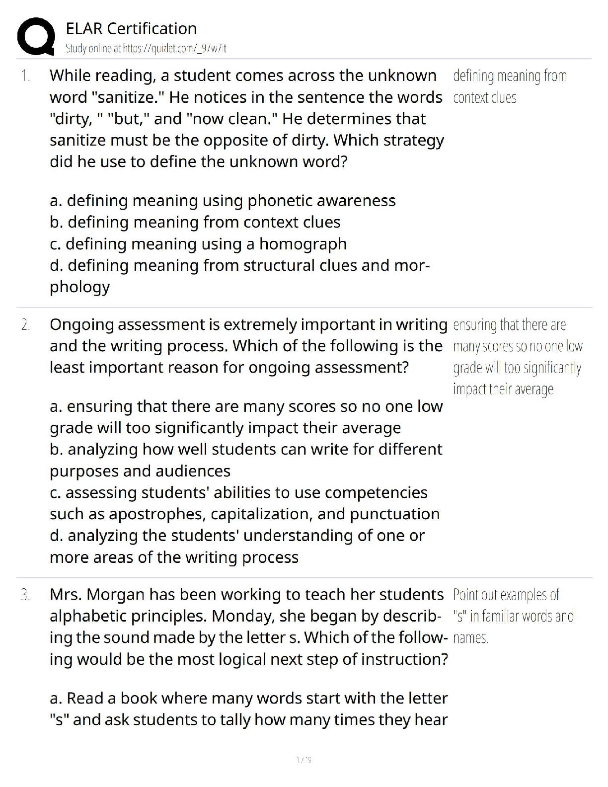 English Language > EXAM REVIEW > ELAR Certification (All)