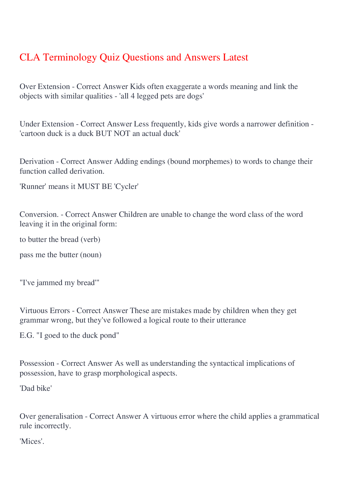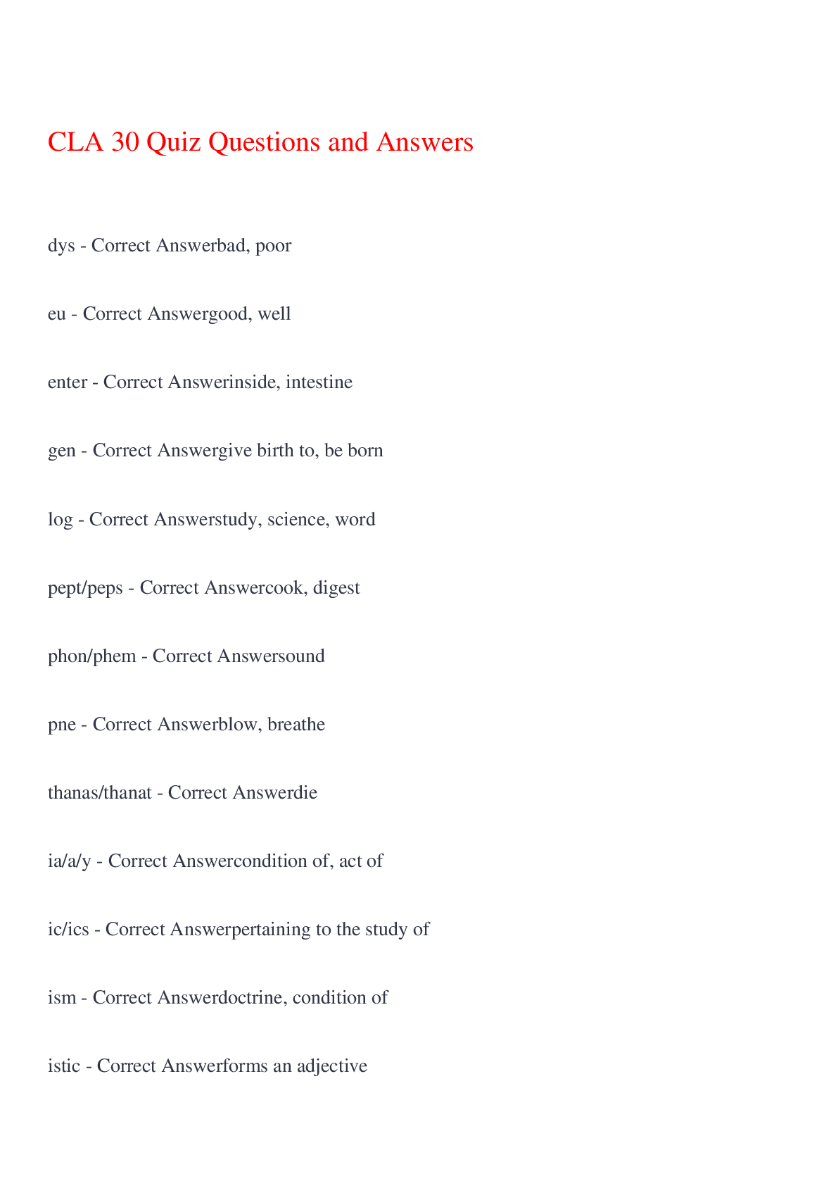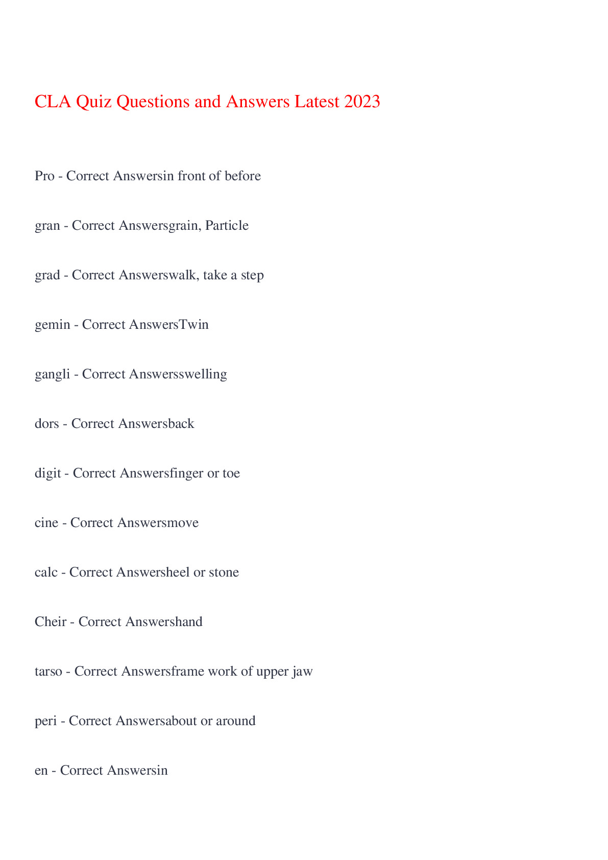 English Language > EXAM > CLA Terminology Quiz Questions and Answers Latest,100% CORRECT (All)