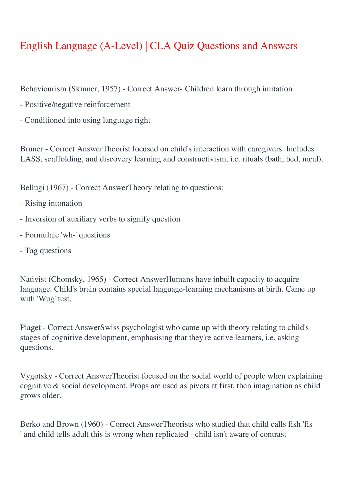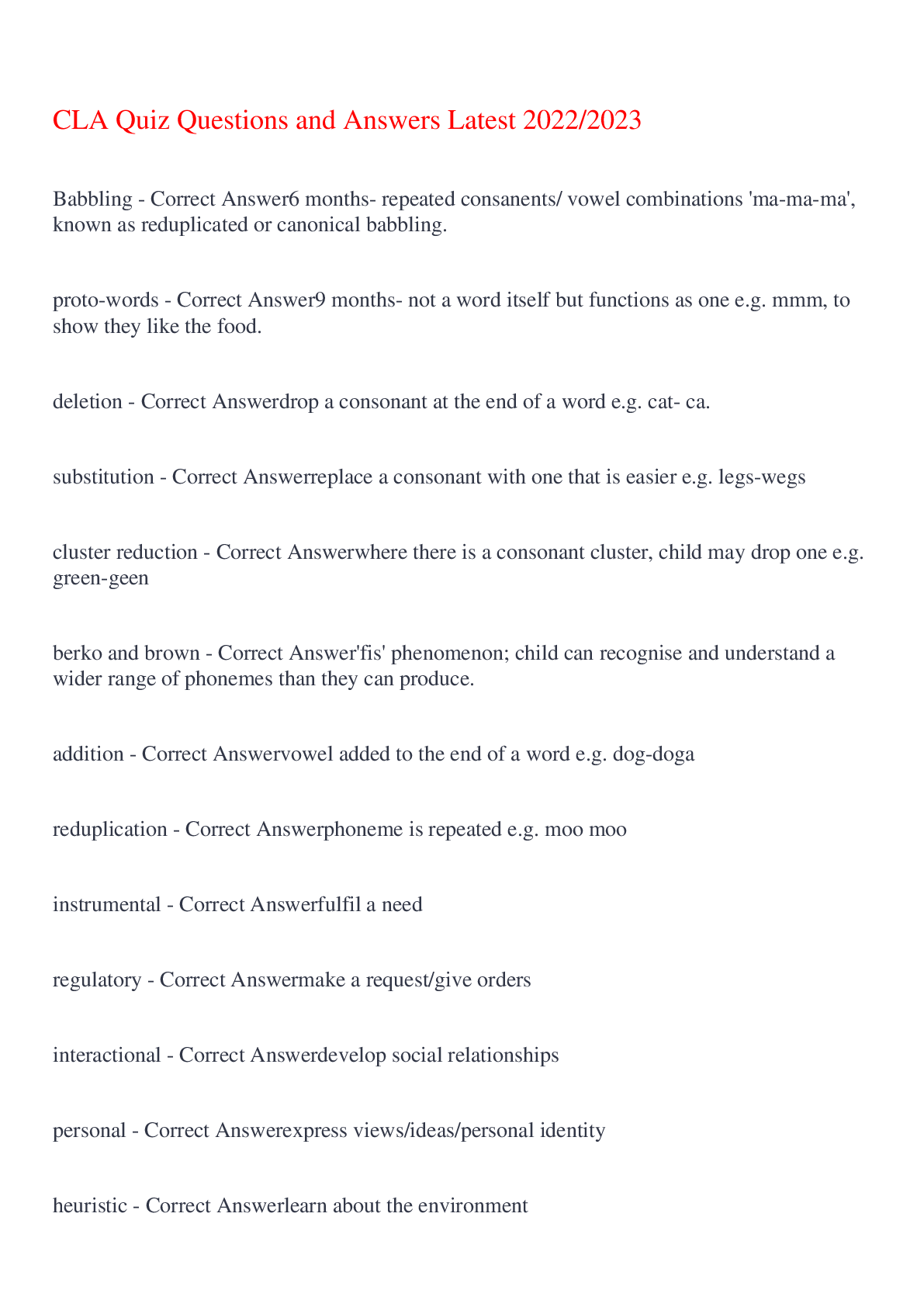 English Language > EXAM > English Language A Level CLA Quiz Questions and Answers,100% CORRECT (All)