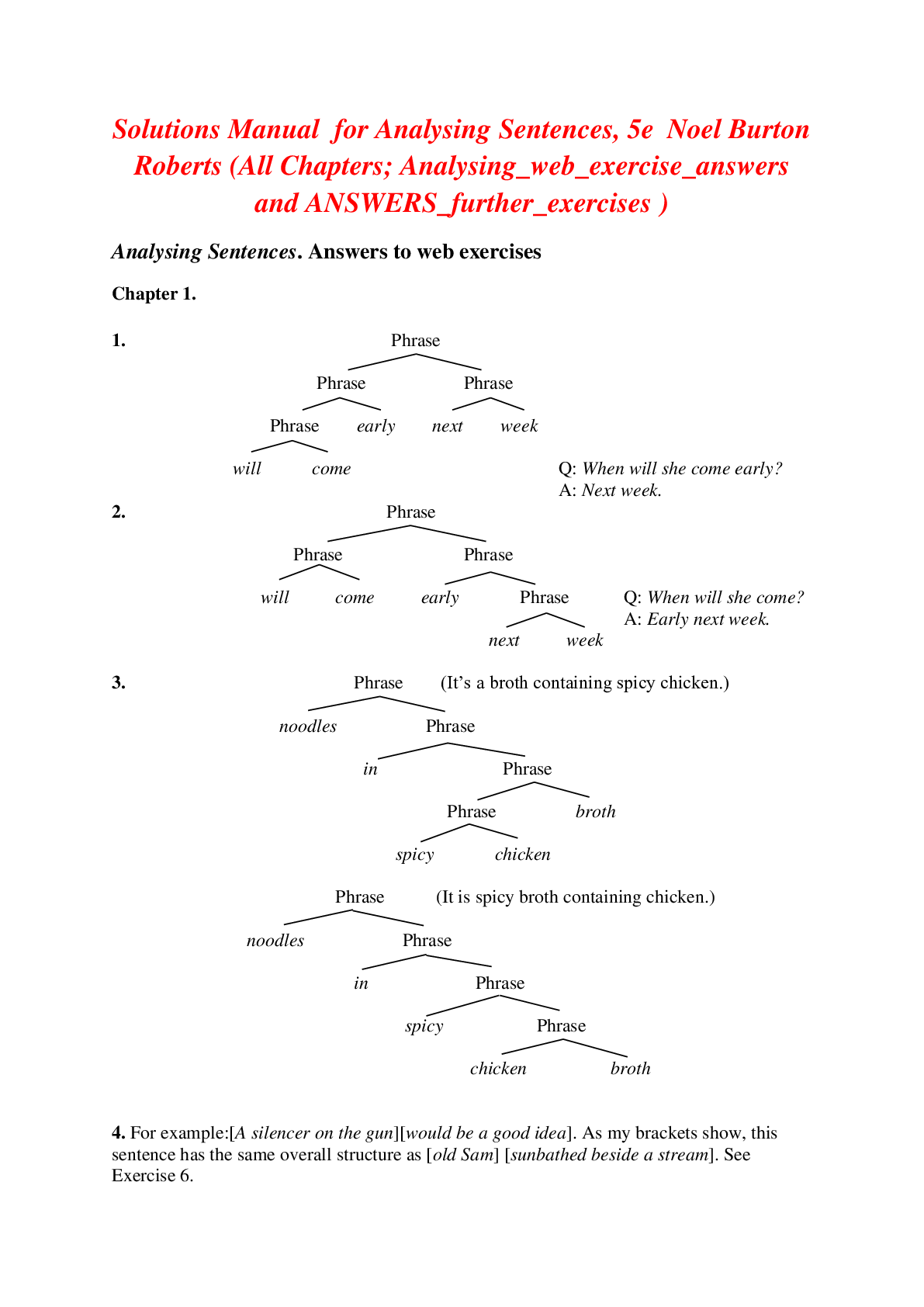 English Language > SOLUTIONS MANUAL > Analyzing Sentences, 5e Noel Burton (Solutions Manual) (All)