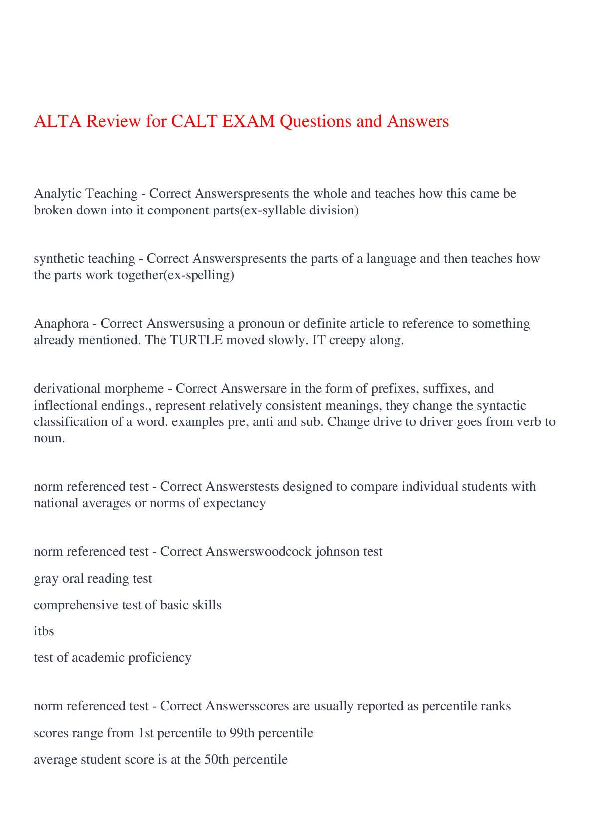 English Language > EXAM > ALTA Review for CALT EXAM Questions and Answers,100% CORRECT (All)