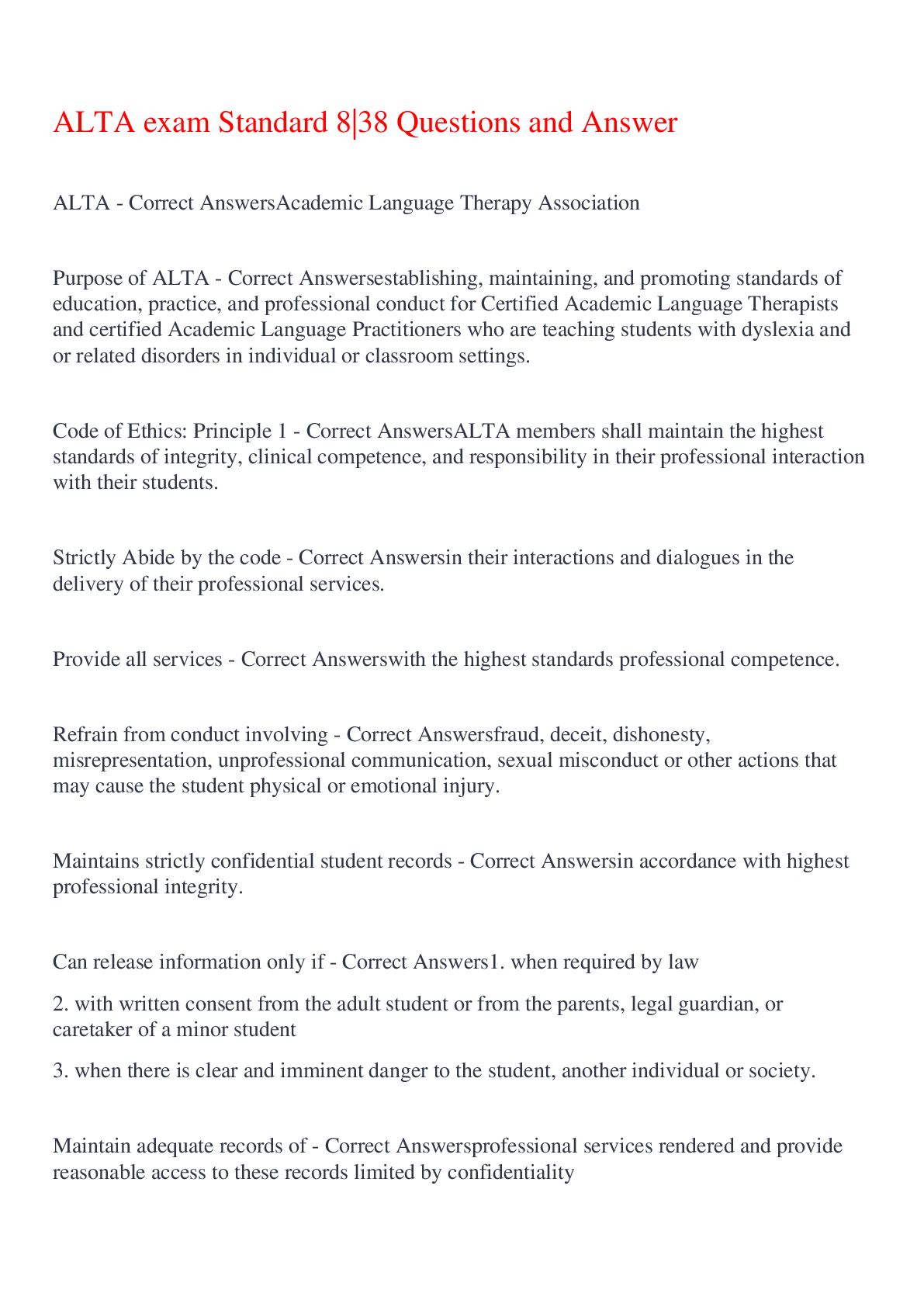 English Language > EXAM > ALTA exam Standard 8|38 Questions and Answer,100% CORRECT (All)