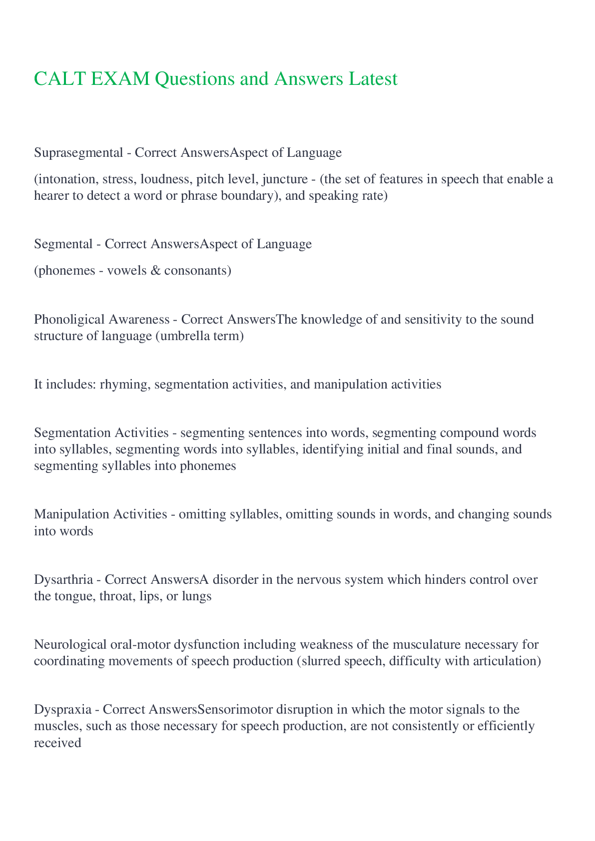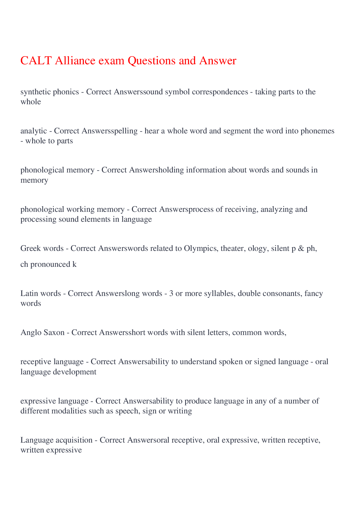 English Language > EXAM > CALT Exam Study Guide Questions and Answers,100% CORRECT (All)