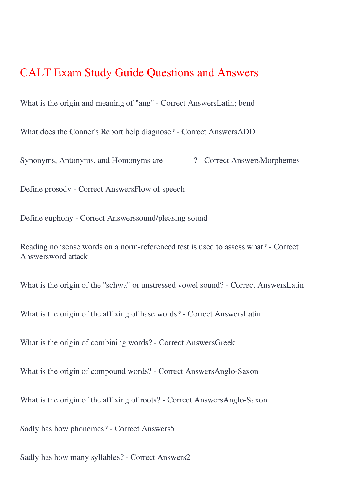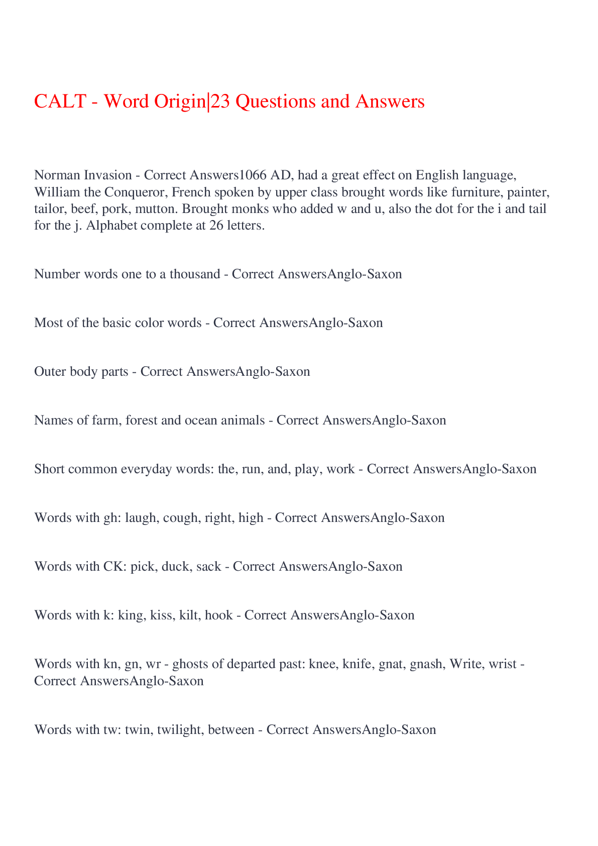 English Language > EXAM > CALT - Word Origin|23 Questions and Answers,100% CORRECT (All)