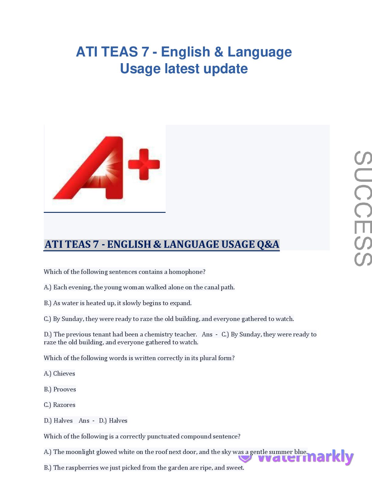 English Language > EXAM > ATI TEAS 7 - English & Language Usage latest update QUESTIONS AND CORRECT ANSWERS GRADE A (All)