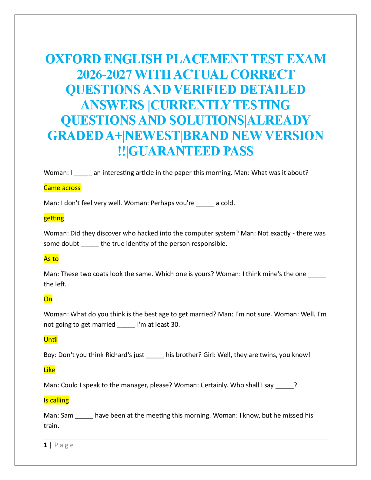 English Language > EXAM > OXFORD ENGLISH PLACEMENT TEST EXAM (All)
