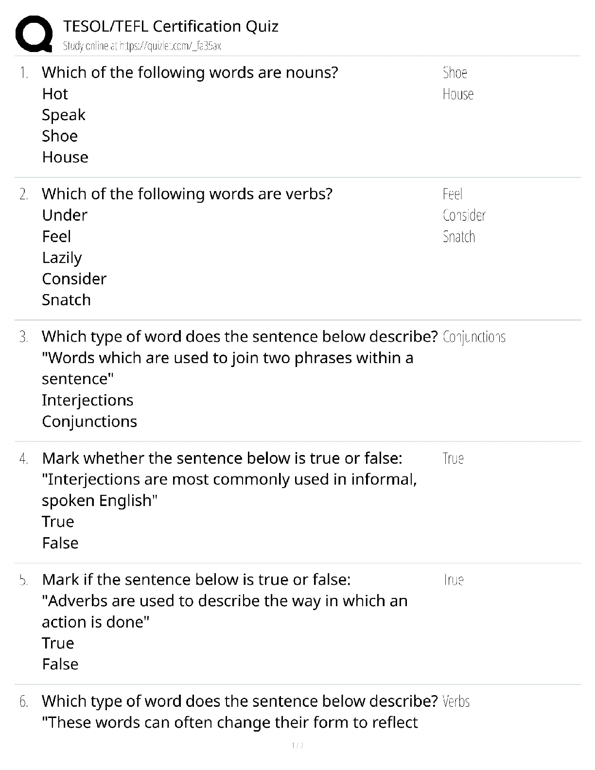 English Language > QUESTIONS & ANSWERS > TESOL TEFL Certification Quiz / 120-Hour Course Test Bank / 2025 Update / Score 100% (All)