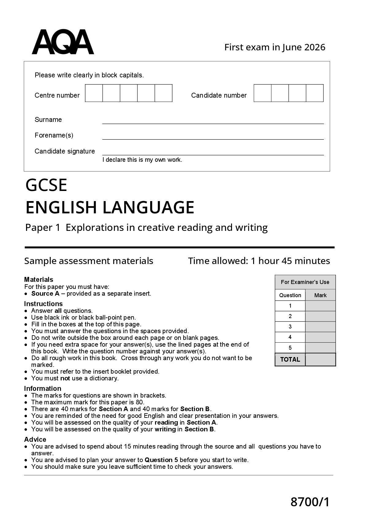 English Language > GCSE QUESTION PAPER > GCSE ENGLISH LANGUAGE Paper 1 Explorations in creative reading and writing (All)