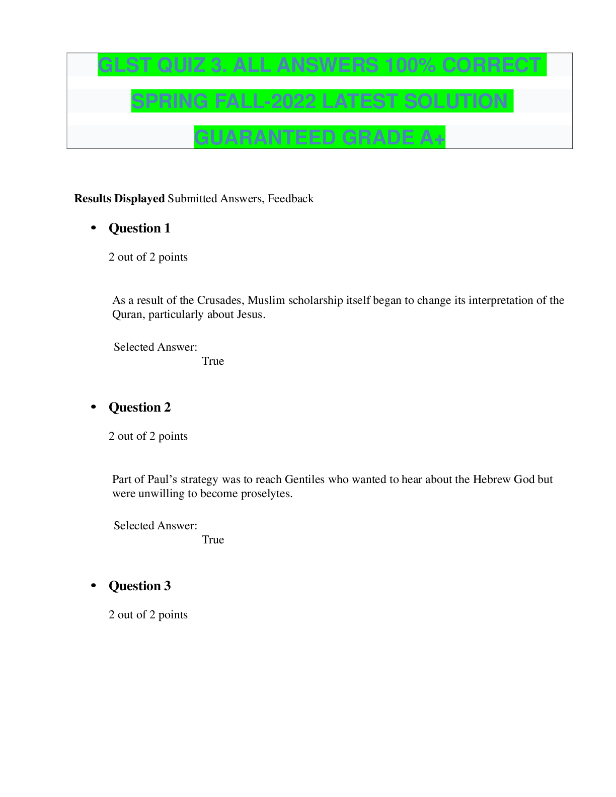 Global Citizenship > EXAM > GLST QUIZ 3. ALL ANSWERS 100% CORRECT SPRING FALL-2022 LATEST SOLUTION GUARANTEED GRADE A+ (All)