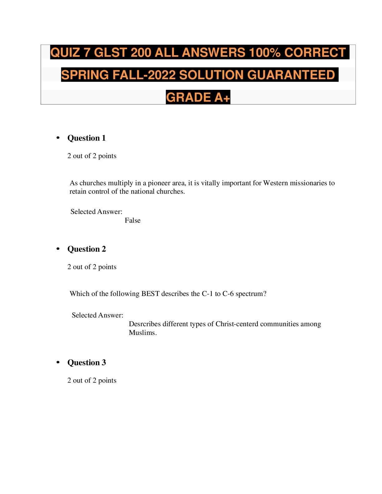 Global Citizenship > EXAM > QUIZ 7 GLST 200 ALL ANSWERS 100% CORRECT SPRING FALL-2022 SOLUTION GUARANTEED GRADE A+ (All)