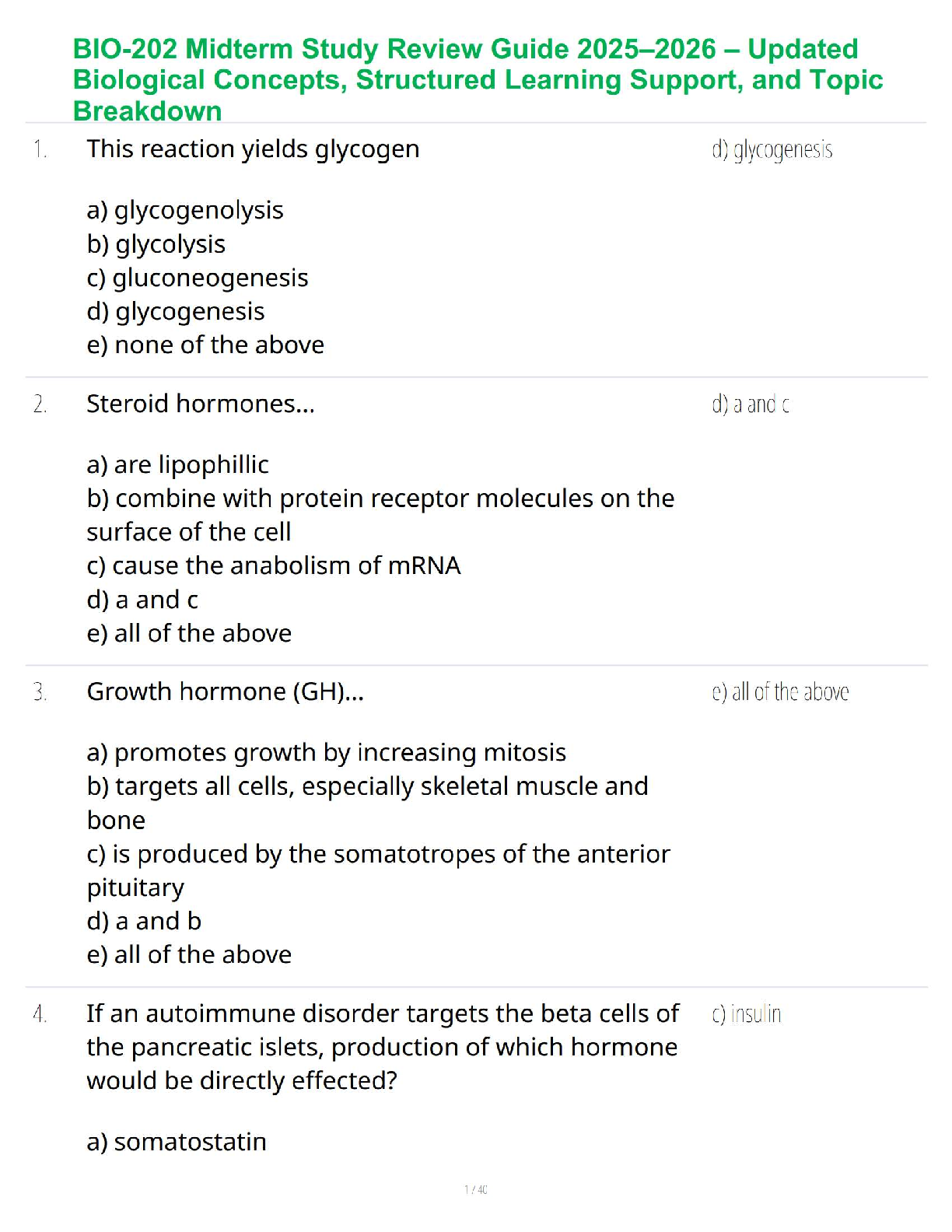 Anatomy and Physiology - A&P 1 > STUDY GUIDE > BIO-202 Midterm Study Review Guide 2025–2026 – Updated Biological Concepts, Structured Learning Support, and Topic Breakdown (All)
