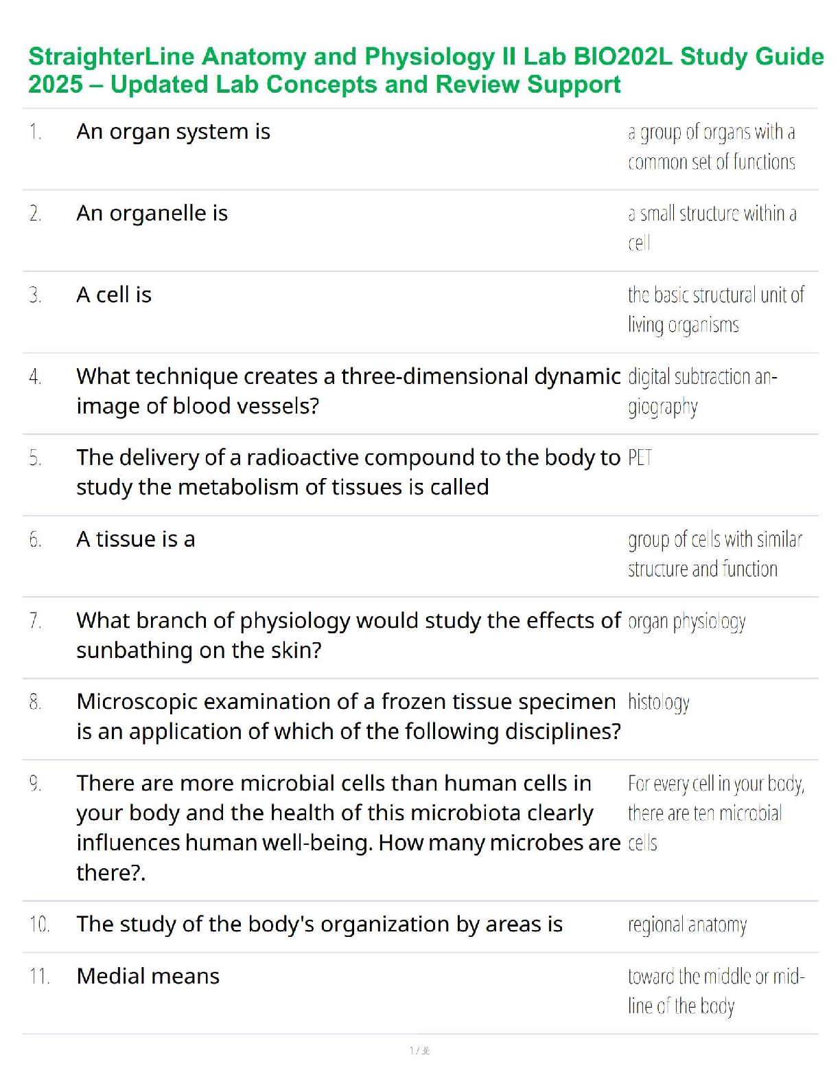 Anatomy and Physiology - A&P 1 > STUDY GUIDE > StraighterLine Anatomy and Physiology II Lab BIO202L Study Guide 2025 – Updated Lab Concepts and Review Support (All)