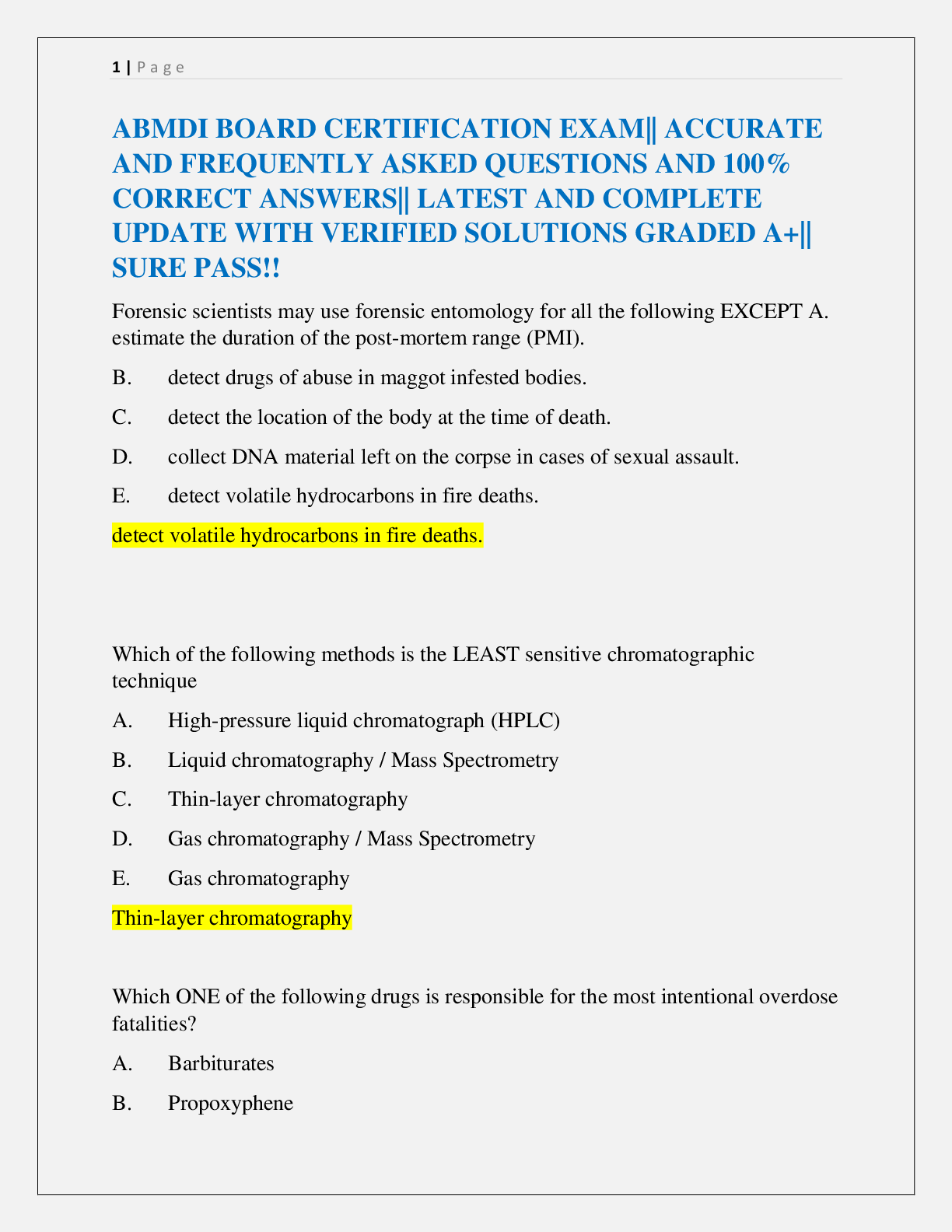 Anatomy and Physiology - A&P 1 > EXAM > ABMDI BOARD CERTIFICATION EXAM|| ACCURATE AND FREQUENTLY ASKED QUESTIONS AND 100% CORRECT ANSWERS|| LATEST AND COMPLETE UPDATE WITH VERIFIED SOLUTIONS GRADED A+|| SURE PASS!! (All)