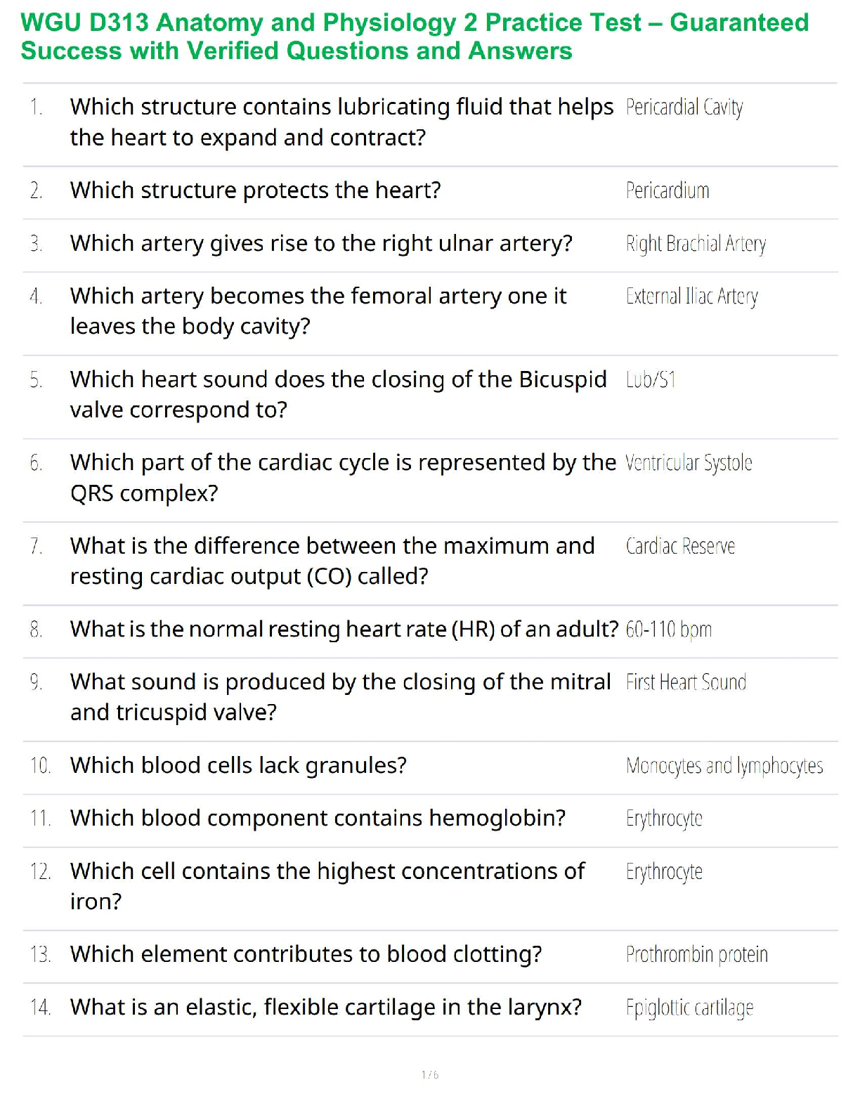 Anatomy and Physiology - A&P 1 > QUESTIONS & ANSWERS > WGU D313 Anatomy and Physiology 2 Practice Test – Guaranteed Success with Verified Questions and Answers (All)