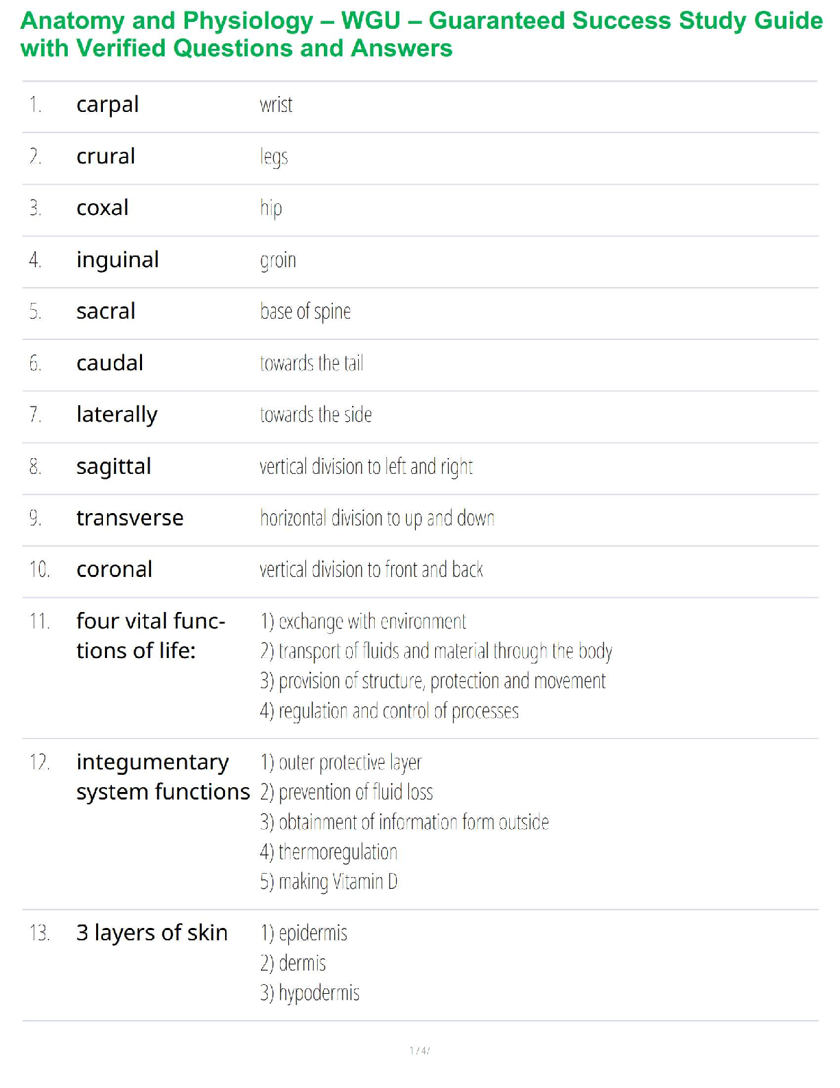 Anatomy and Physiology - A&P 1 > STUDY GUIDE > Anatomy and Physiology – WGU – Guaranteed Success Study Guide with Verified Questions and Answers (All)