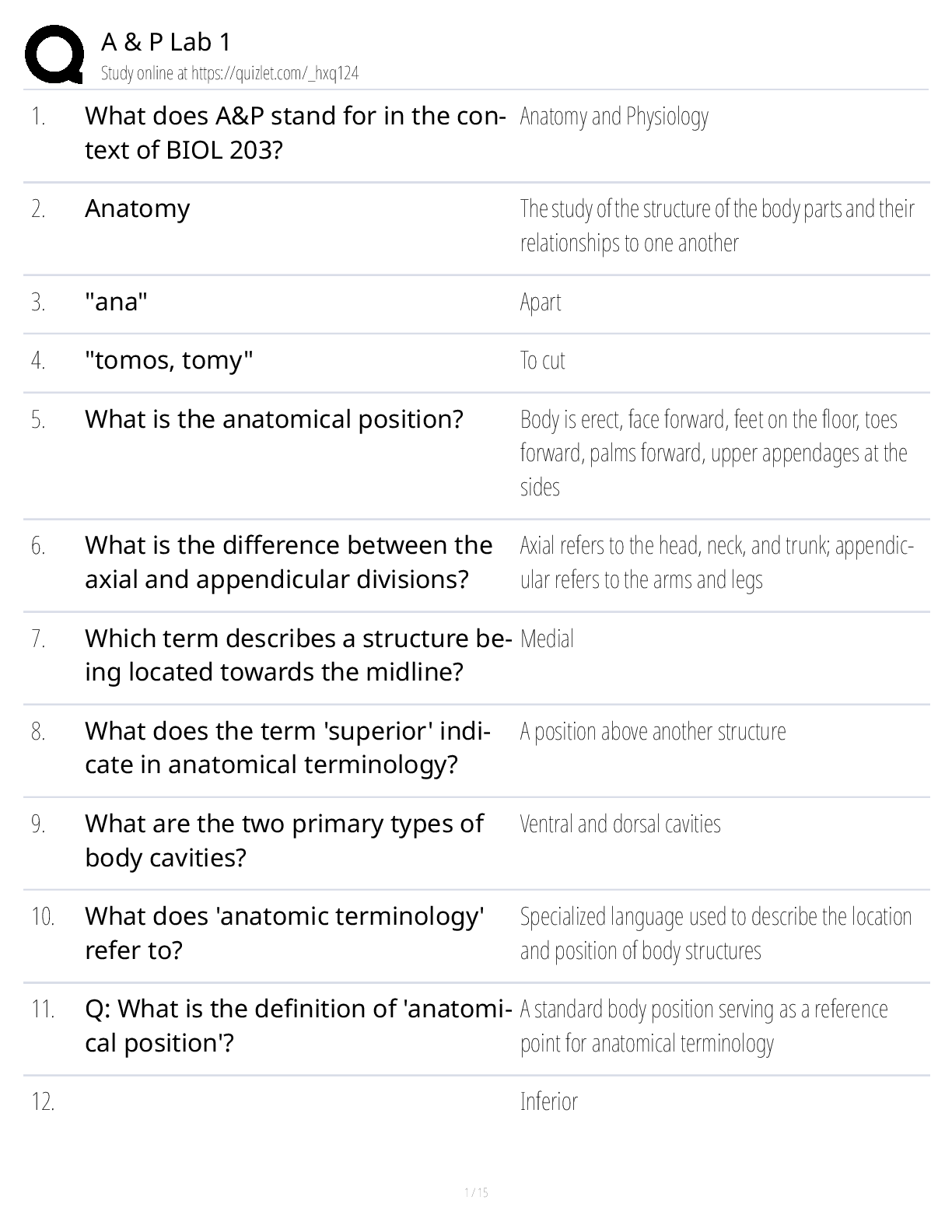 Anatomy and Physiology - A&P 1 > TEST BANKS > A & P Lab 1 Class Notes, Study Guide & Test Bank (Anatomy & Physiology Lab Practical Prep) (All)