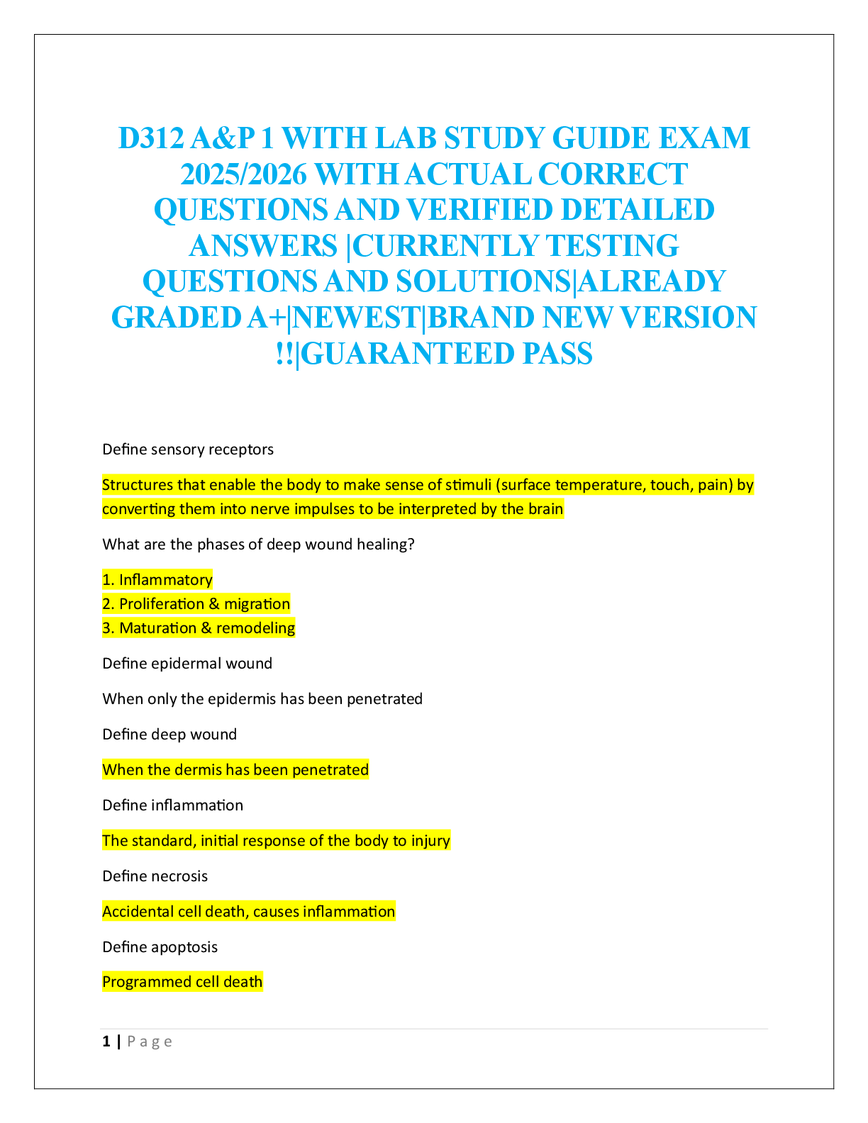 Anatomy and Physiology - A&P 1 > EXAM > D312 A&P 1 WITH LAB STUDY GUIDE EXAM (All)