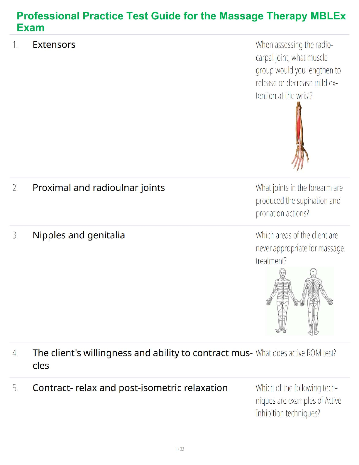 Anatomy and Physiology - A&P 1 > STUDY GUIDE > Professional Practice Test Guide for the Massage Therapy MBLEx Exam (All)