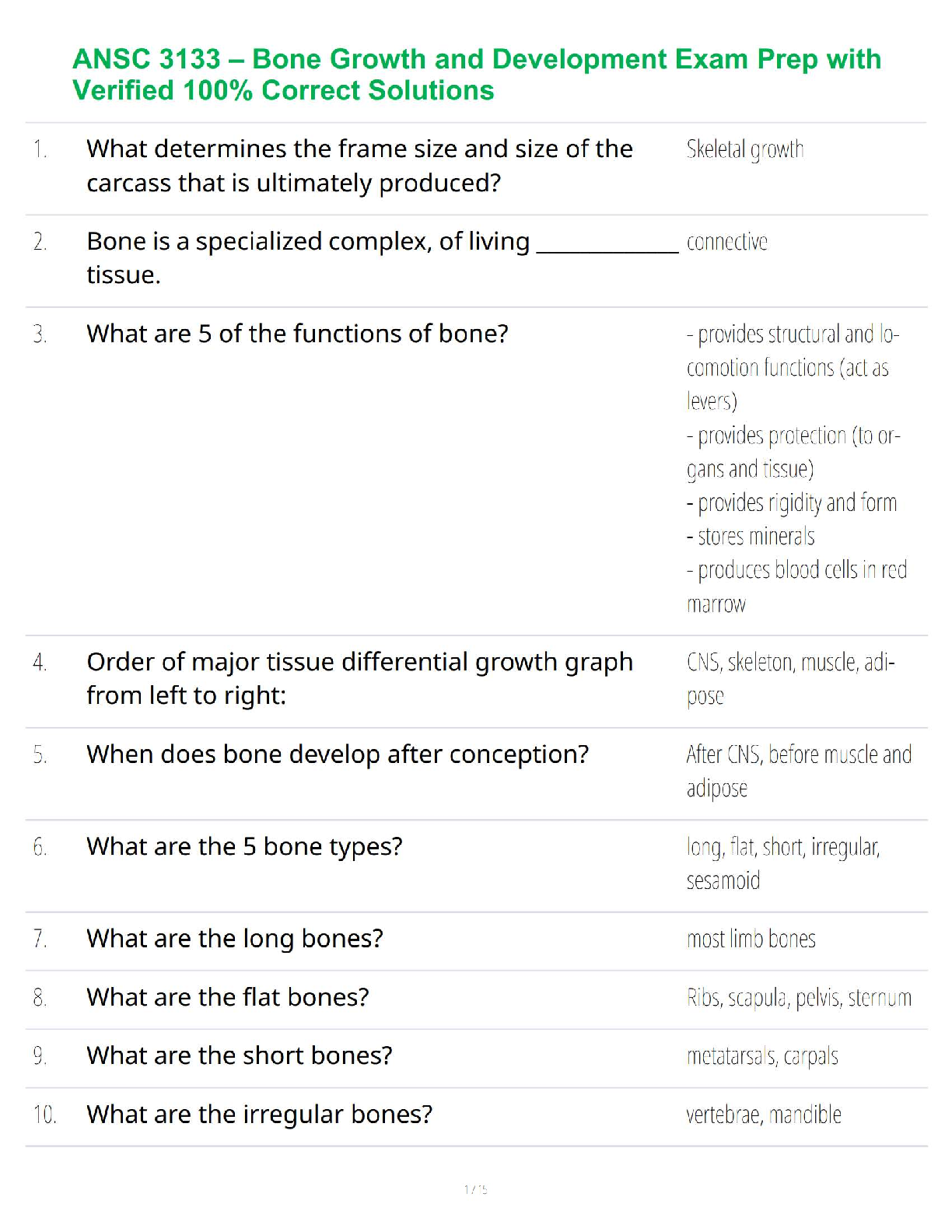 Anatomy and Physiology - A&P 1 > STUDY GUIDE > ANSC 3133 – Bone Growth and Development Exam Prep with Verified 100% Correct Solutions (All)
