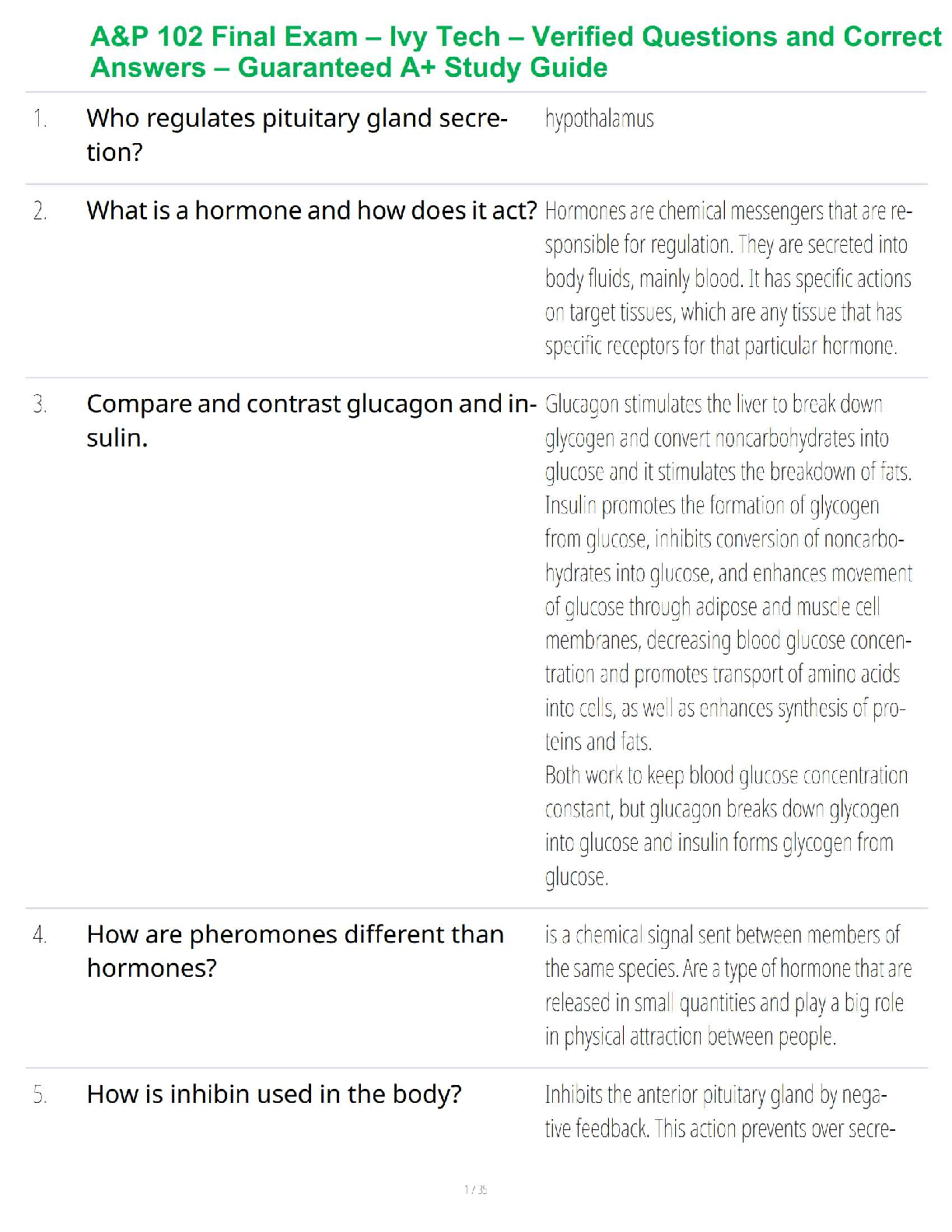 Anatomy and Physiology - A&P 1 > STUDY GUIDE > A&P 102 Final Exam – Ivy Tech – Verified Questions and Correct Answers – Guaranteed A+ Study Guide (All)
