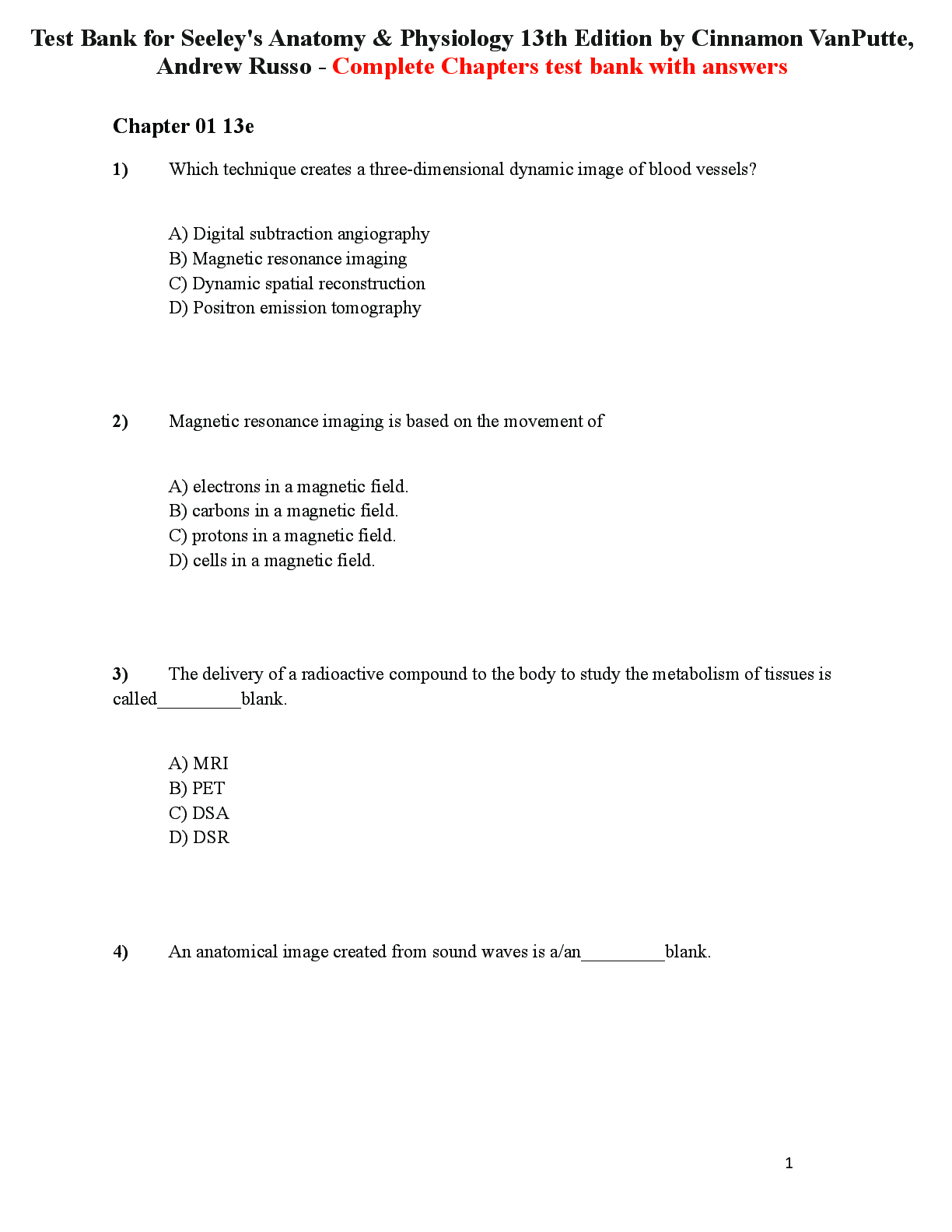 Anatomy and Physiology - A&P 1 > TEST BANKS > Test Bank for Seeley's Anatomy & Physiology 13th Edition by Cinnamon VanPutte, Andrew Russo All Chapters 1-29 (All)
