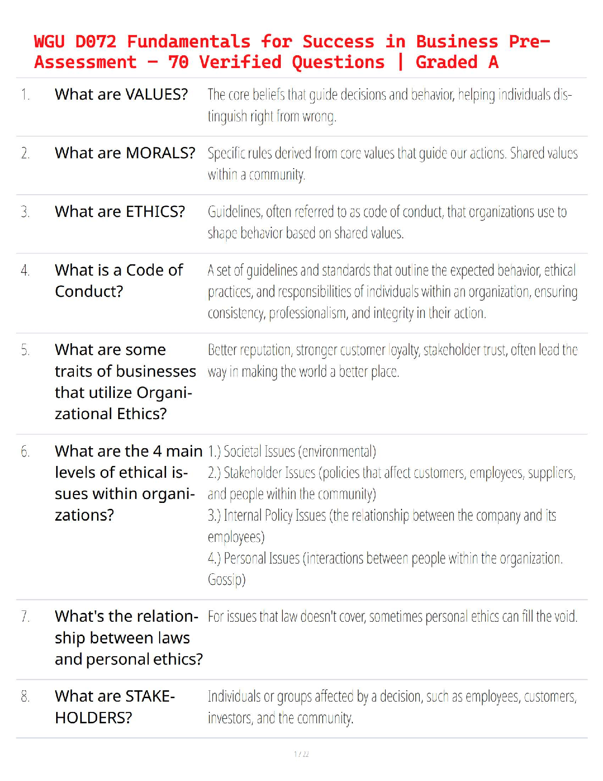 Business Studies > EXAM > WGU D072 Fundamentals for Success in Business Pre-Assessment – 70 Verified Questions (All)