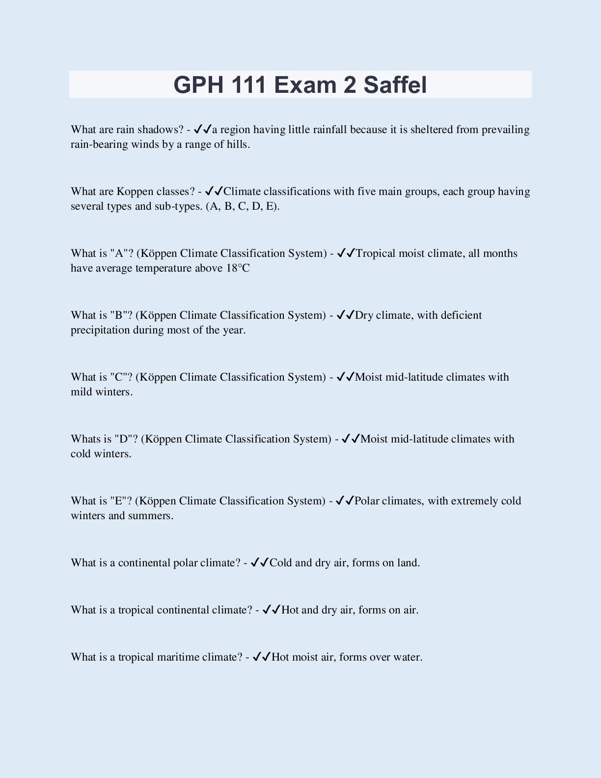 Geography > EXAMs > GPH 111 Exam 2 Saffel | 70 Questions with 100% Correct Answers | Updated & Verified (All)