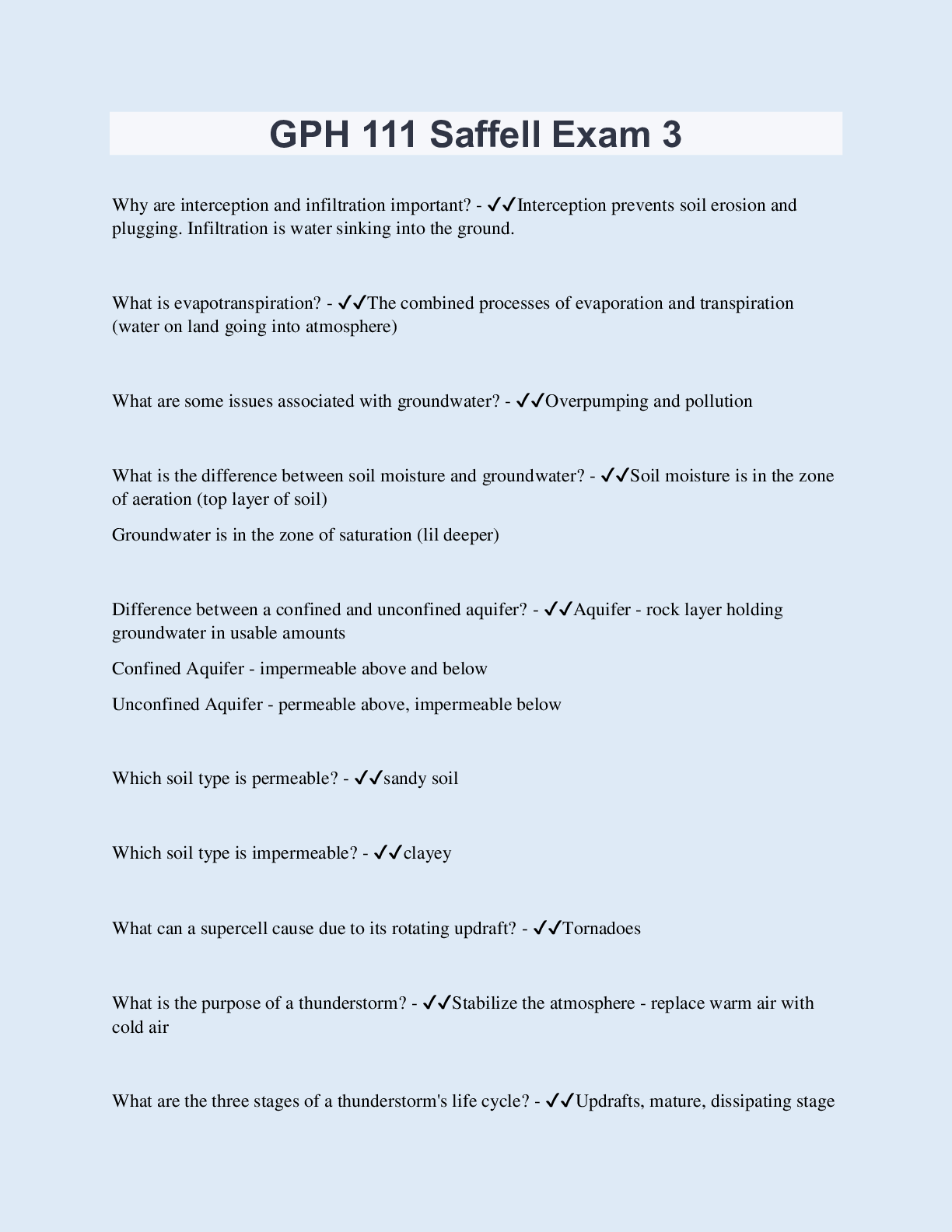 Geography > EXAMs > GPH 111 Exam 3 Questions & Answers | 40 Questions with 100% Correct Answers | Updated & Verified (All)
