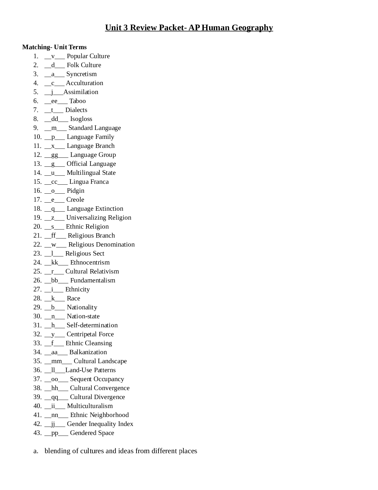 Geography > STUDY GUIDE > Unit 3 Review Packet- AP Human Geography (All)