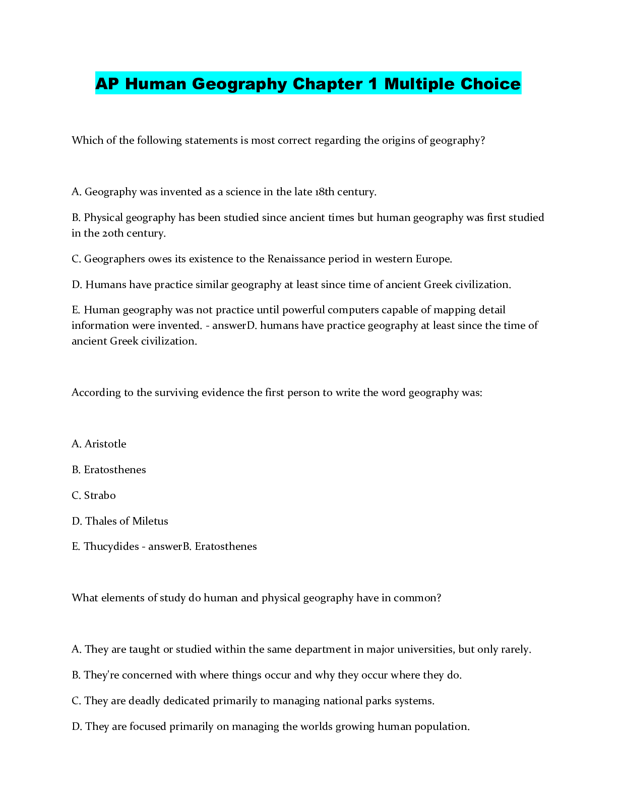 Geography > QUESTIONS & ANSWERS > AP Human Geography Chapter 1 Multiple Choice (All)