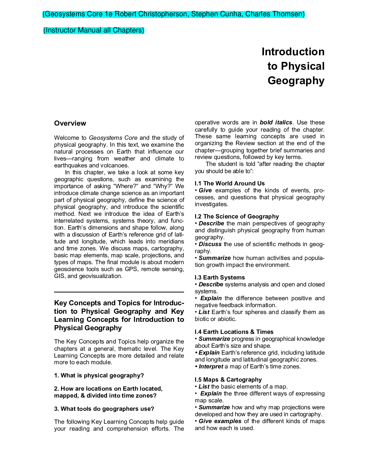 Geography > INSTRUCTOR MANUALS > Geosystems Core 1e Robert Christopherson, Stephen Cunha, Charles Thomsen (Instructor Manual) (All)