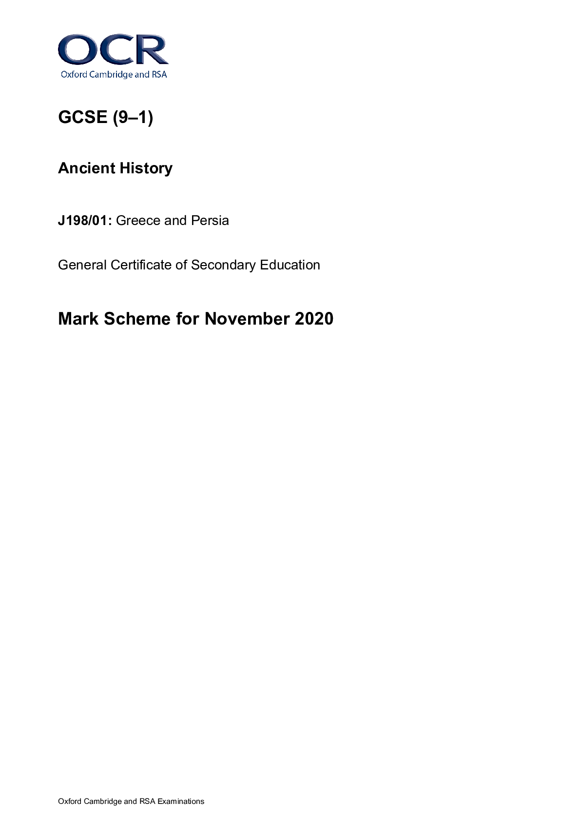 Geography > AS Mark Scheme > GCSE (9–1) Ancient History J198/01: Greece and Persia General Certificate of Secondary Education Mark Scheme for November 2020 (All)