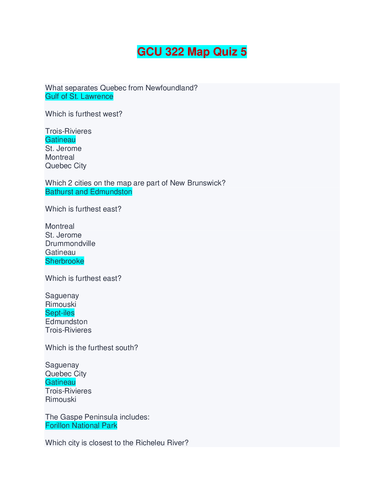 Geography > EXAMs > GCU 322 Map Quiz 5 - Questions and Answers (All)