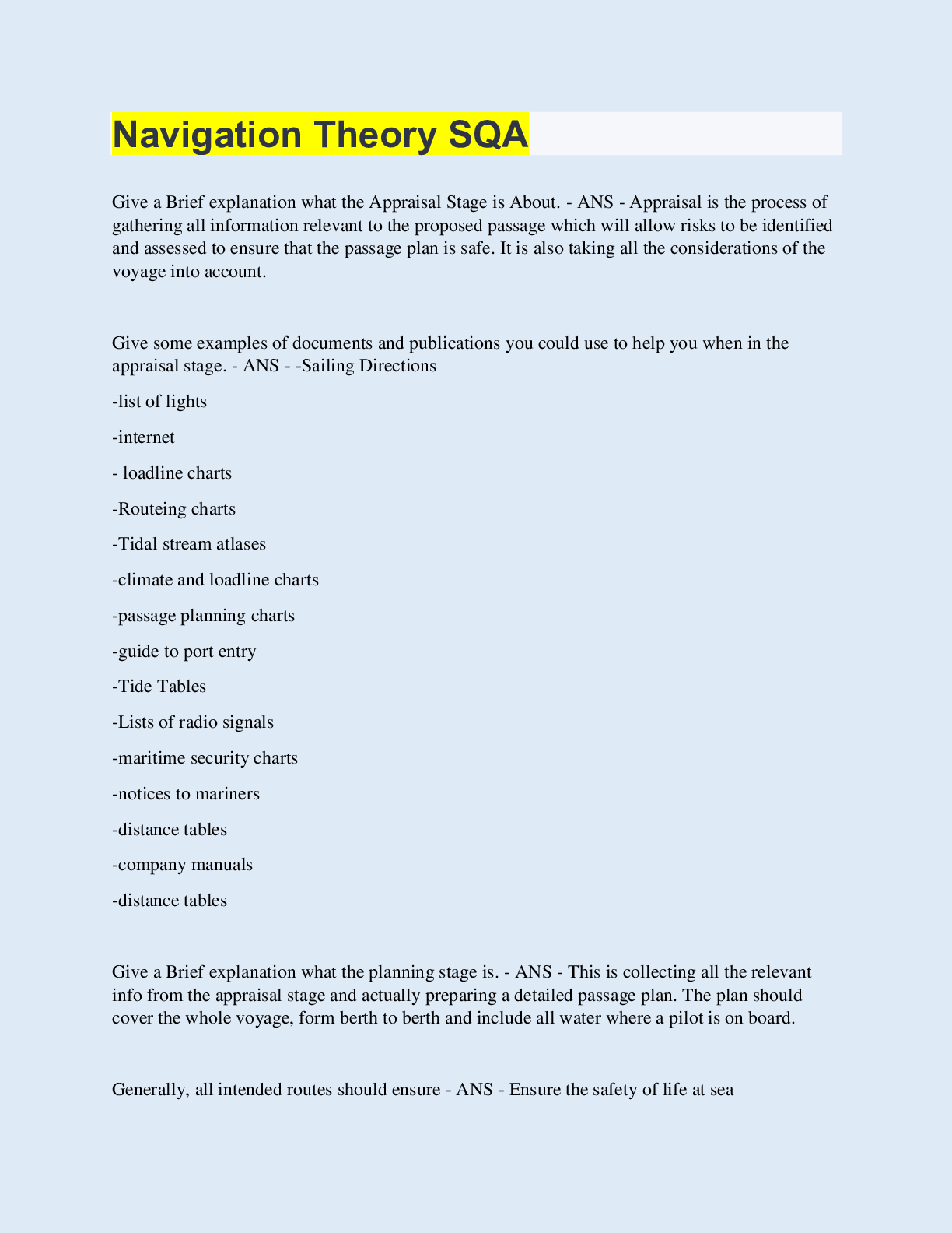 Geography > EXAMs > Navigation Theory SQA | 90 Questions with 100% Correct Answers | Updated & Verified | 25 Pages (All)