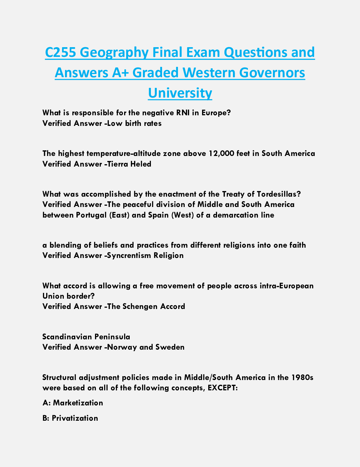 Geography > EXAMs > C255 Geography Final Exam Questions and Answers A+ Graded Western Governors University (All)