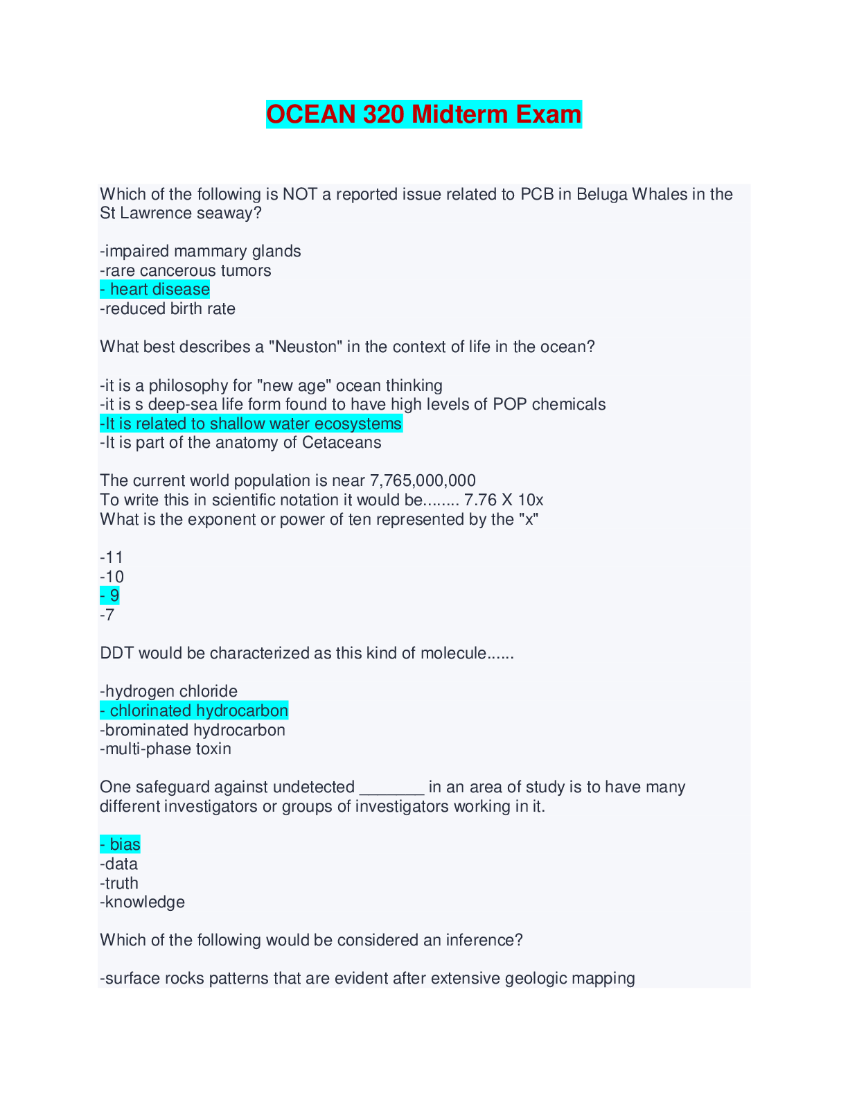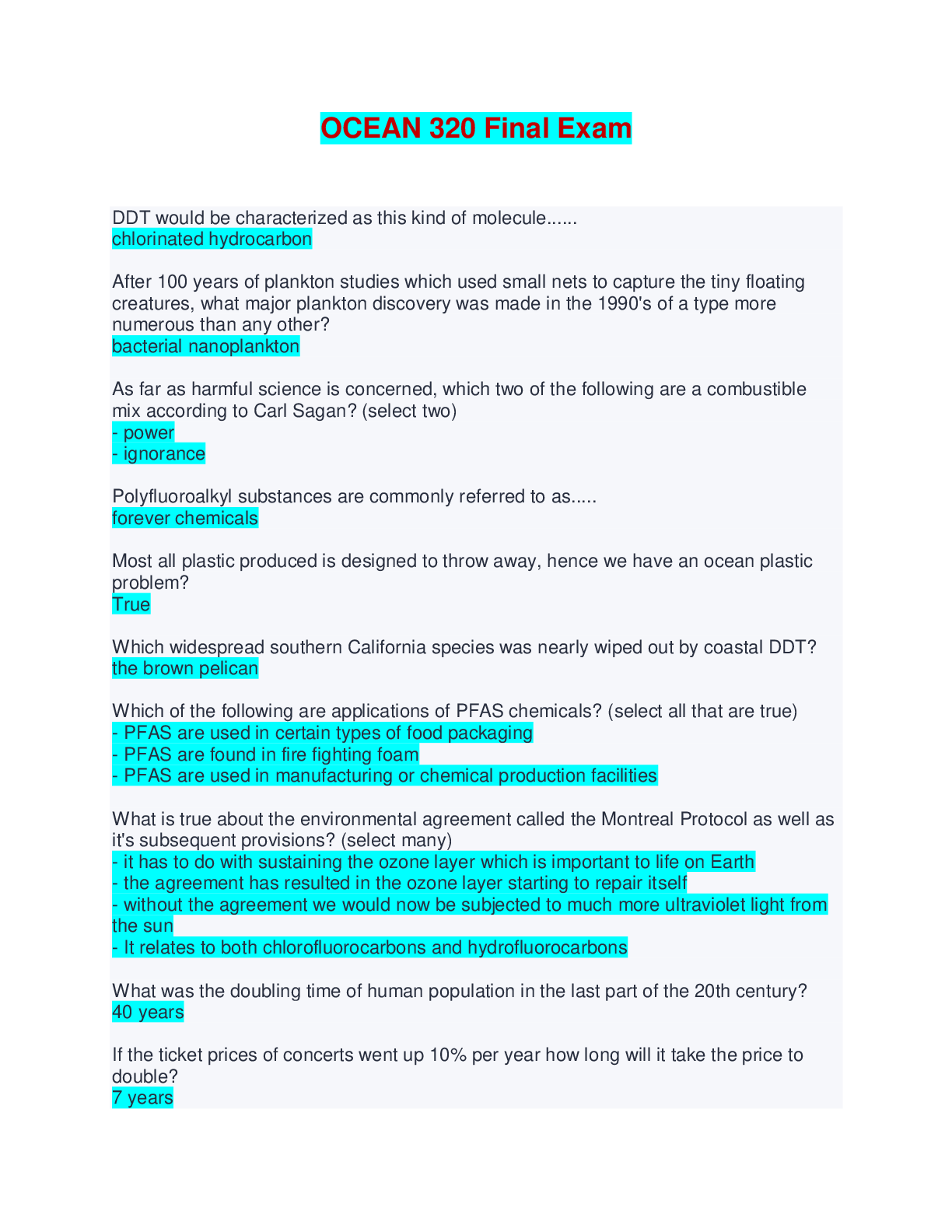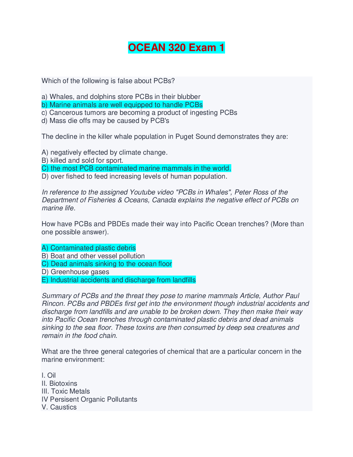 Geography > EXAMs > OCEAN 320 Final Exam | Questions with Verified Answers (All)